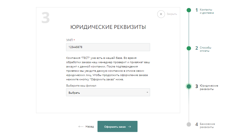 При первичном оформлении заказа мы обязательно проверяем УНП пользователя по хэшу (да, ввести 123 456 789 не получится), чтобы отфильтровывать спам.