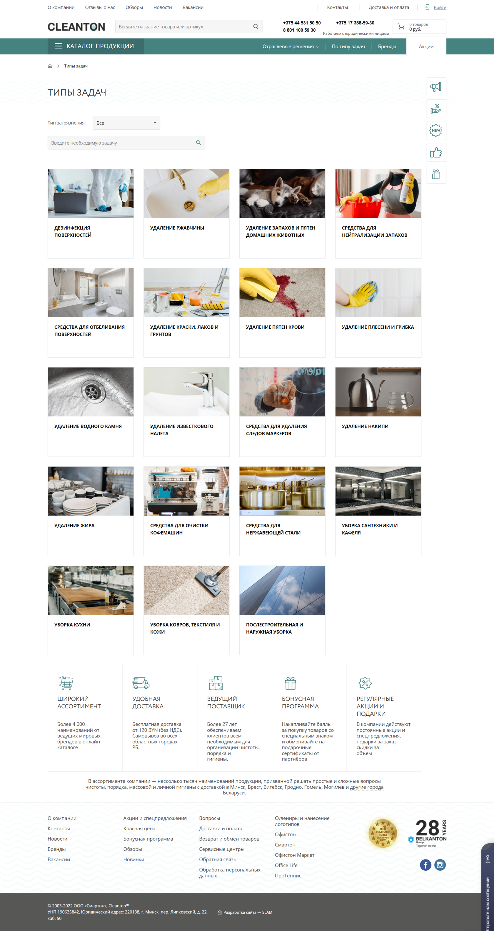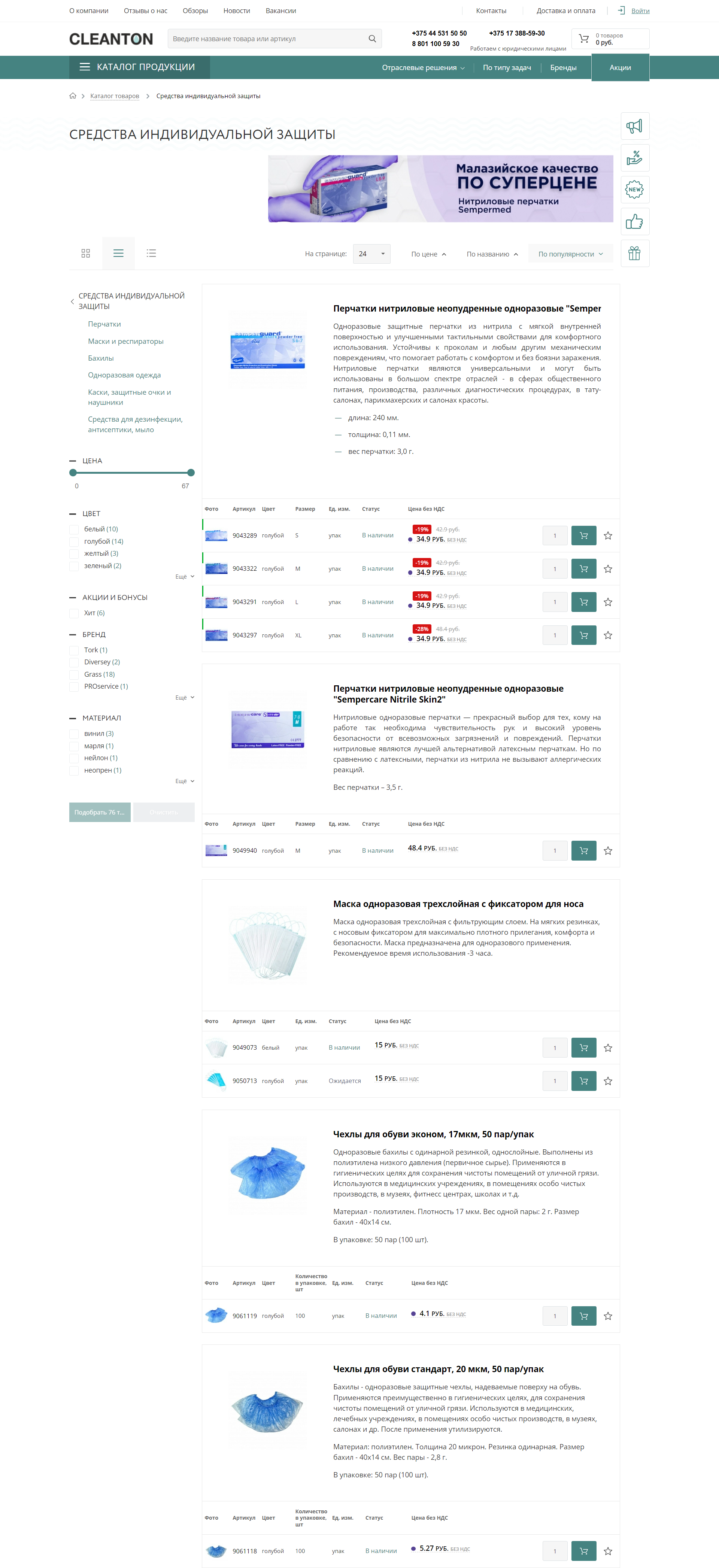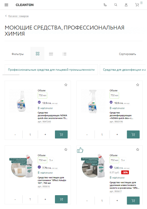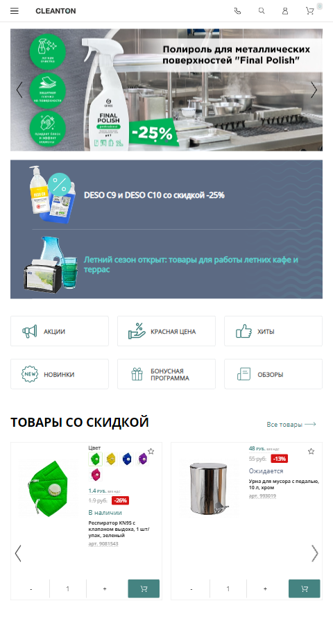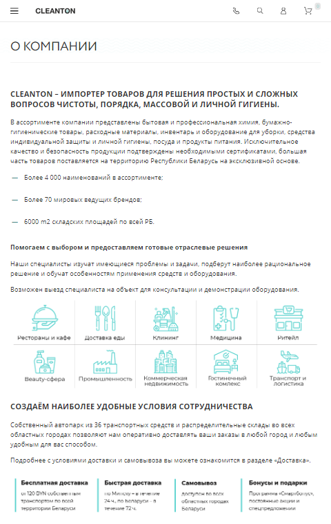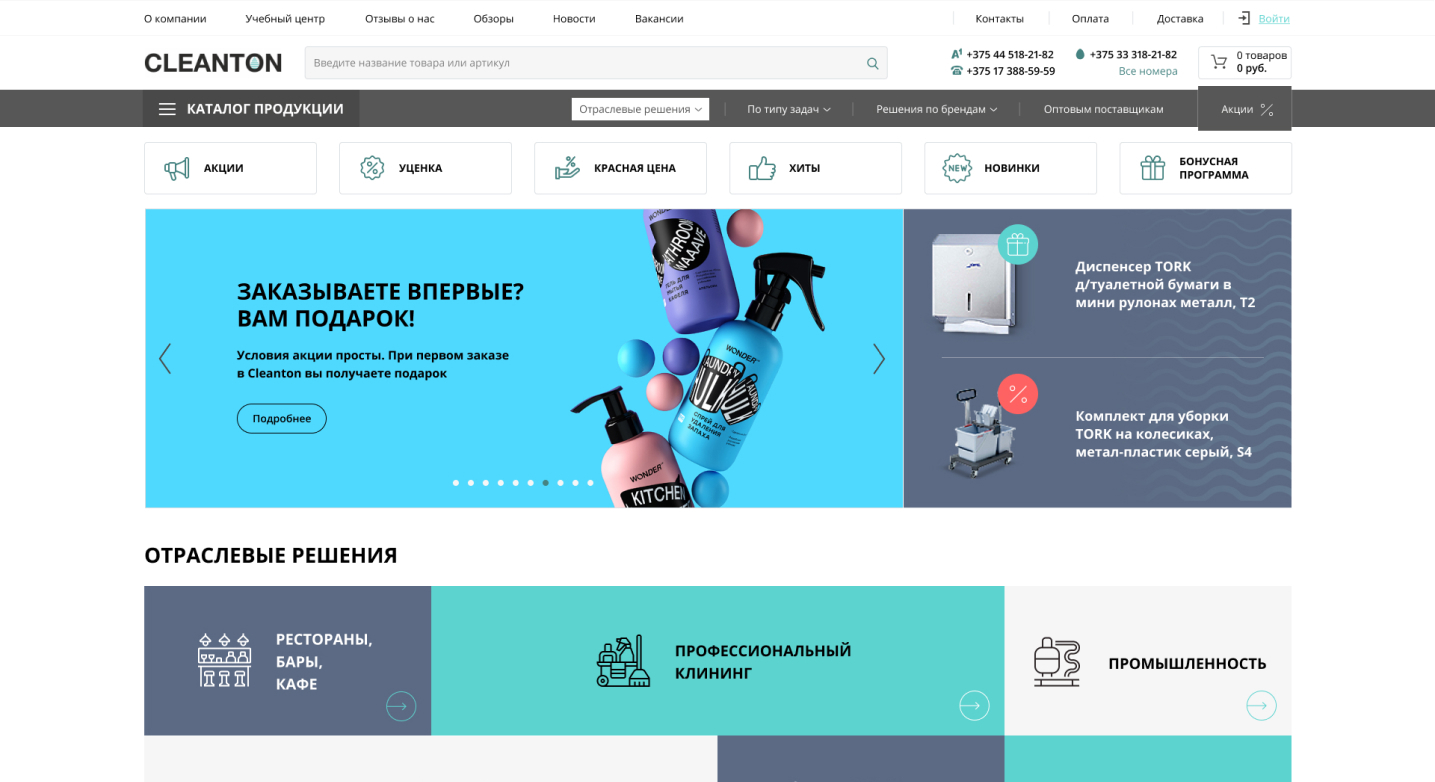 CLEANTON — импортер товаров для решения простых и сложных вопросов чистоты, порядка, массовой и личной гигиены. Мы разработали многофункцмональный интернет-магазин для удобной оптовой и розничной торговли.
