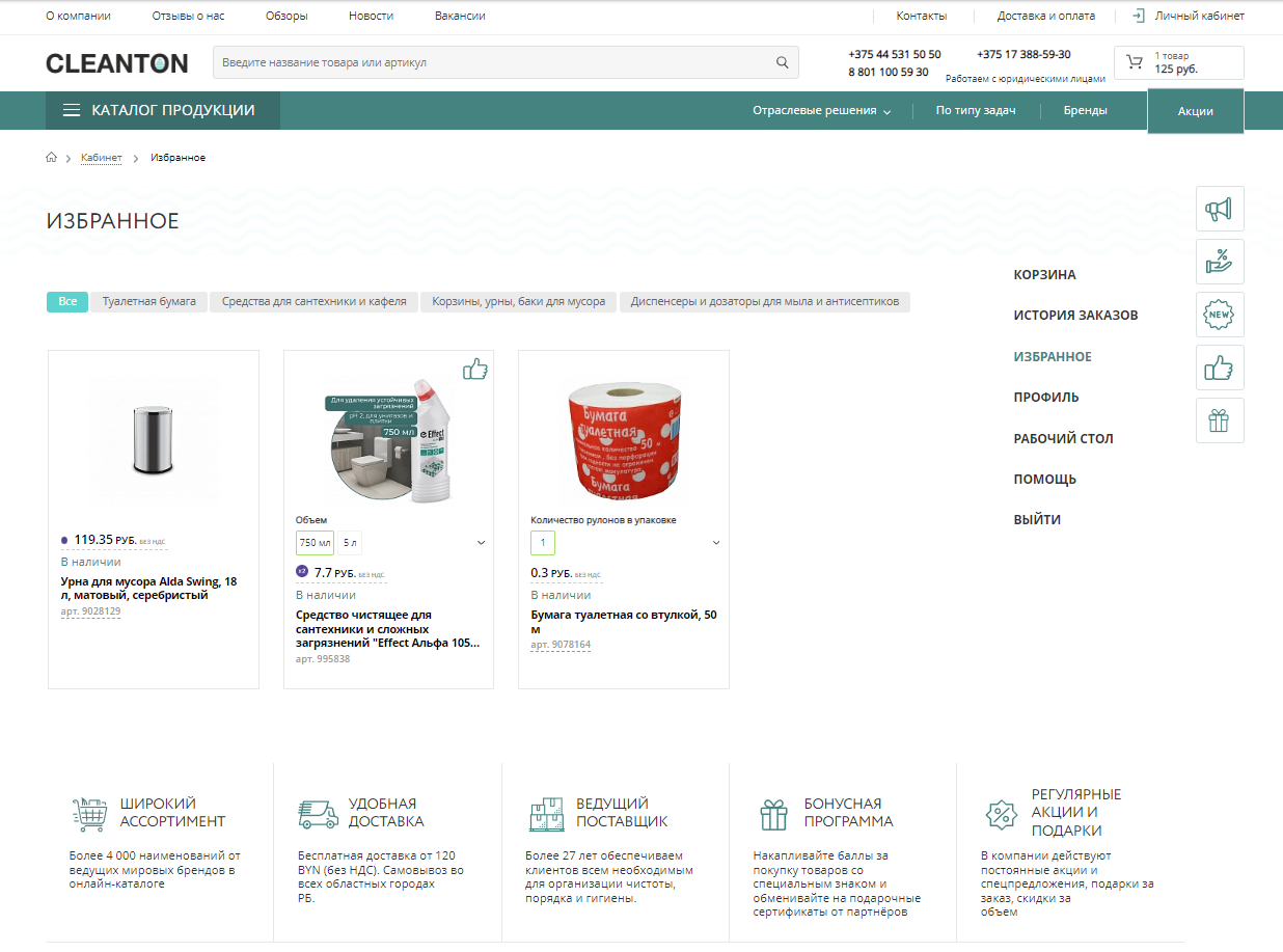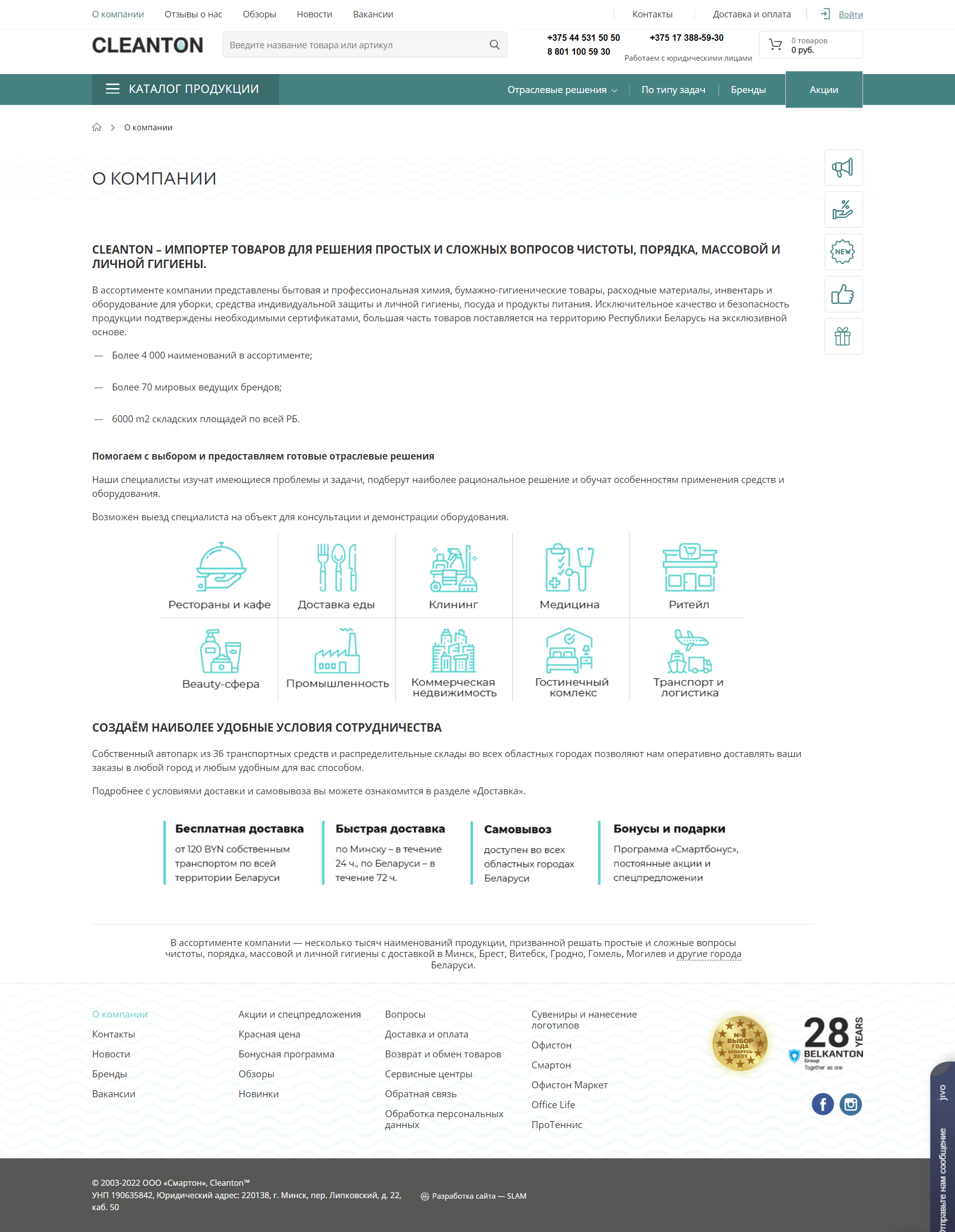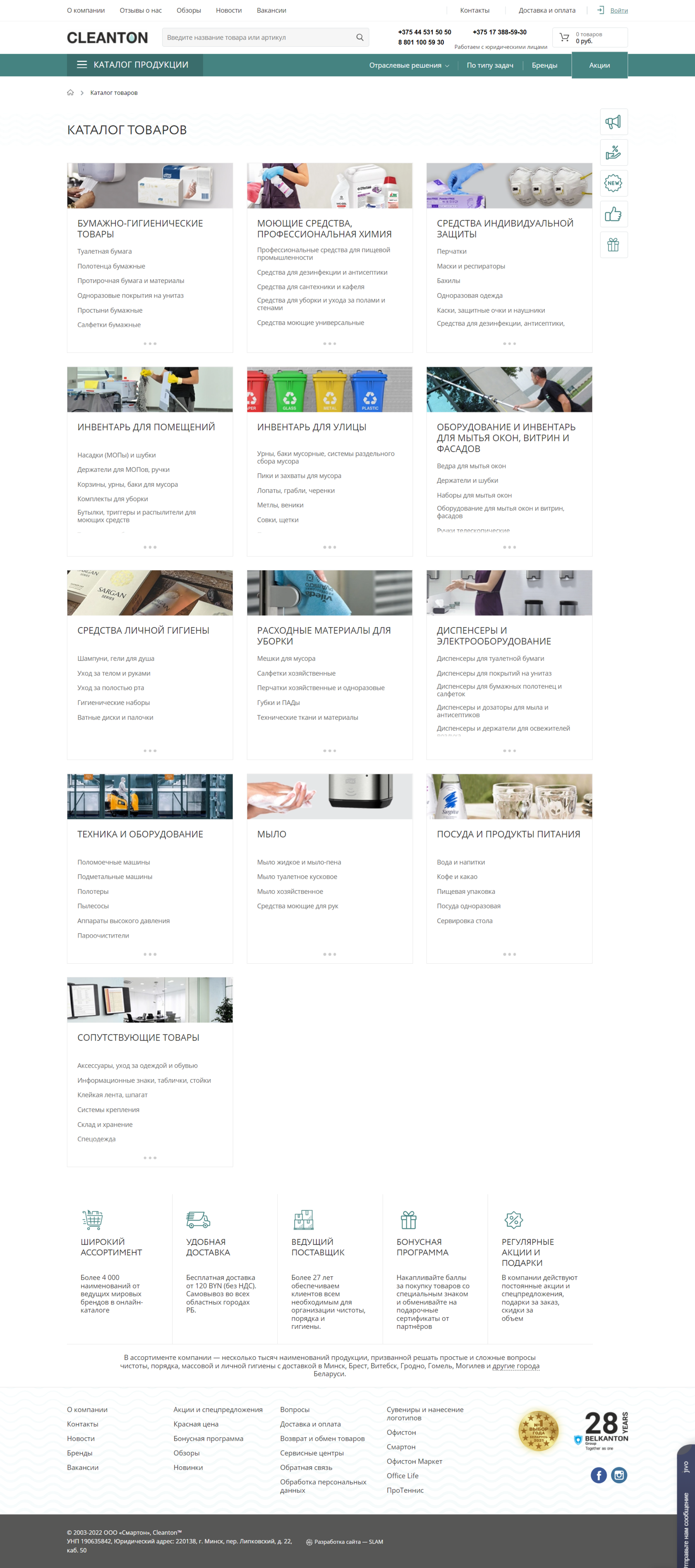 CLEANTON — импортер товаров для решения простых и сложных вопросов чистоты, порядка, массовой и личной гигиены. Мы разработали многофункцмональный интернет-магазин для удобной оптовой и розничной торговли.