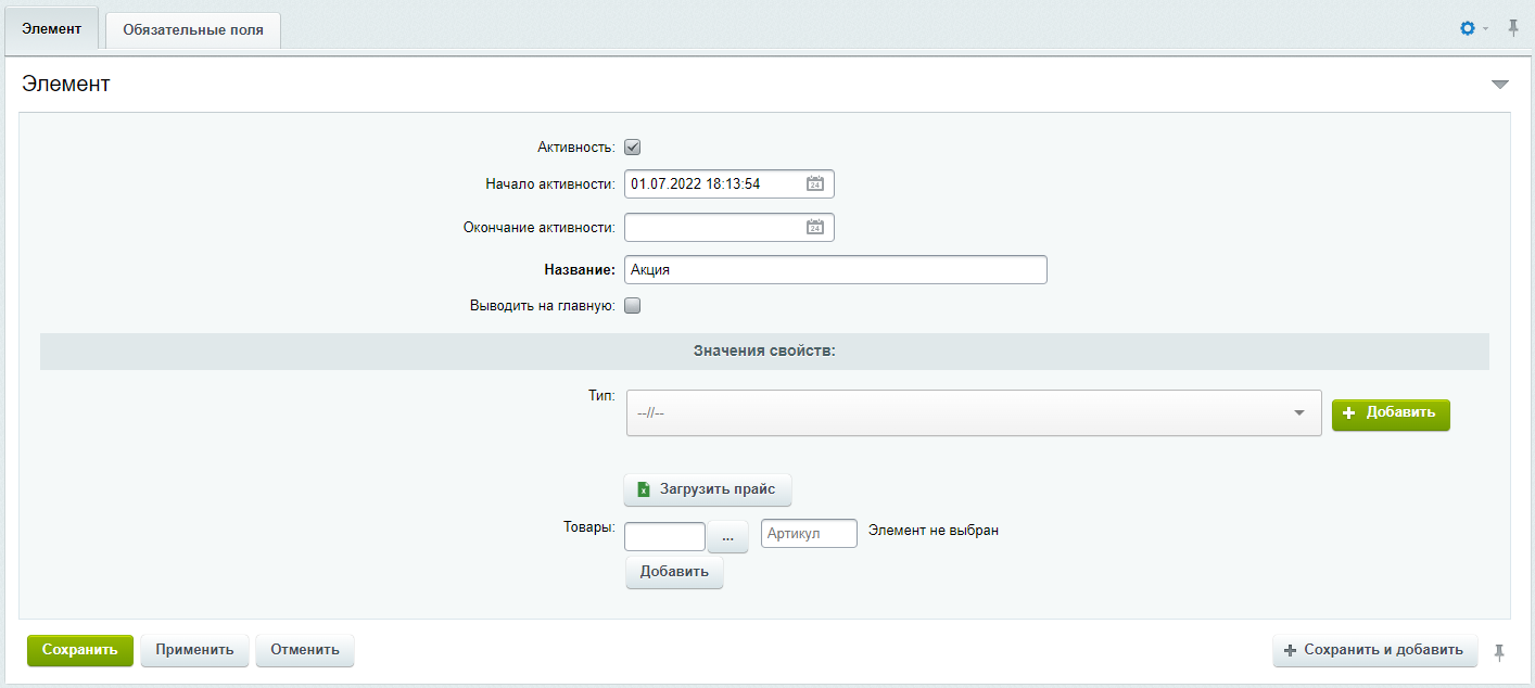 Классически лейблы хит, новинка или скидка назначаются или свойством в выгрузке из 1С, или управляются напрямую через карточку товара. Для Офистона мы используем модуль, через который контент-редакторы могут управлять лейблами, импортируя отдельные базы артикулов, на которые можно повесить любые лейблы на сайте. Редакторы заливают файл, выбирают нужный лейбл, даты начала и окончания действия лейблов. Теперь редакторам не нужно постоянно снимать лейблы. Они просто заливают файлы и они автоматически снимаются сами.