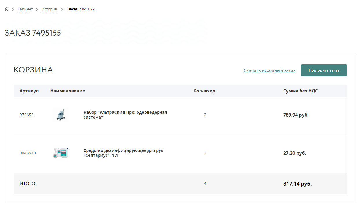 В кабинете пользователя отображается не только актуальный заказ, но и первичный заказ пользователя.