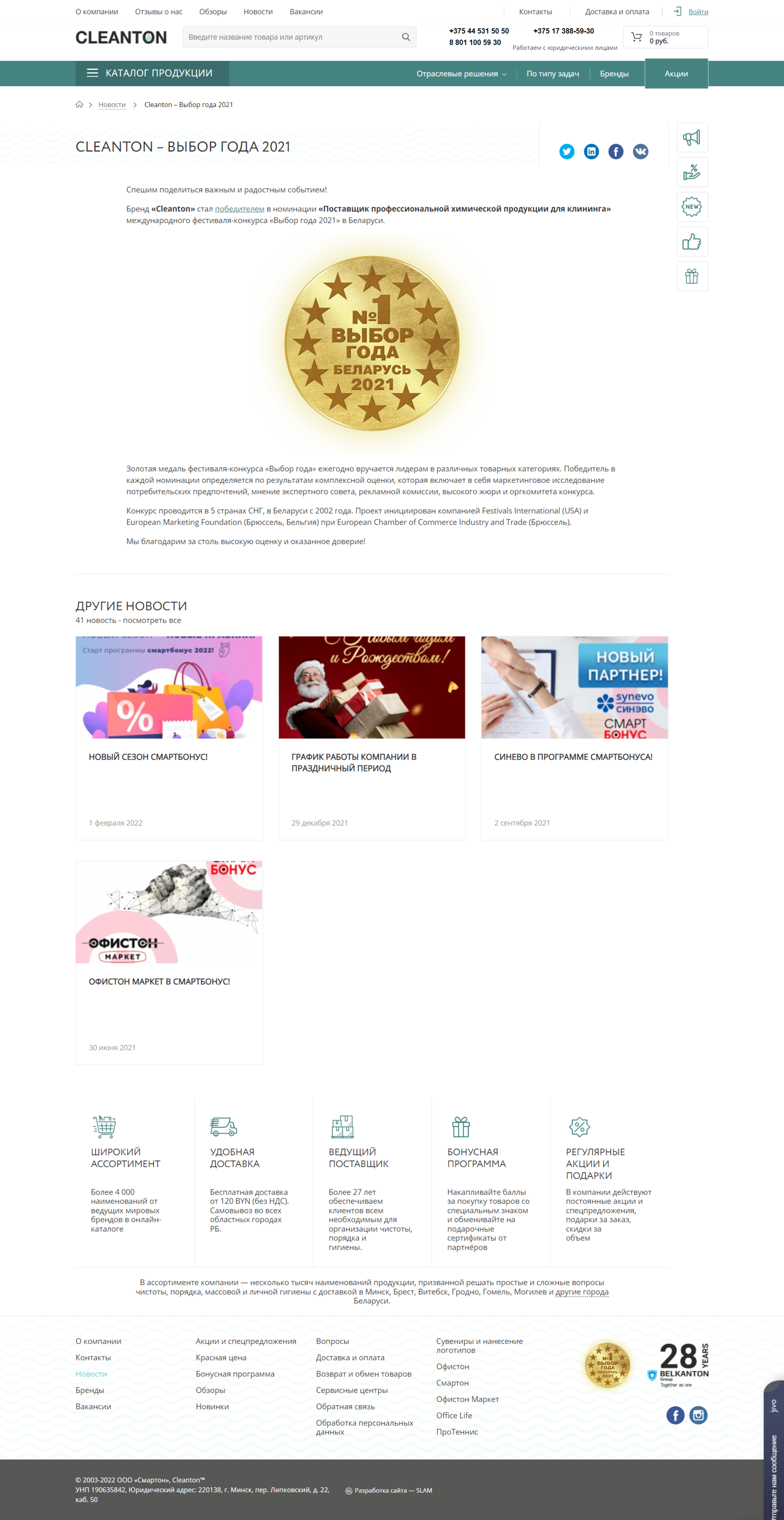 На Рейтинге Байнета 2022 cleanton.by занял 3 место в номинации «Интернет-магазины».