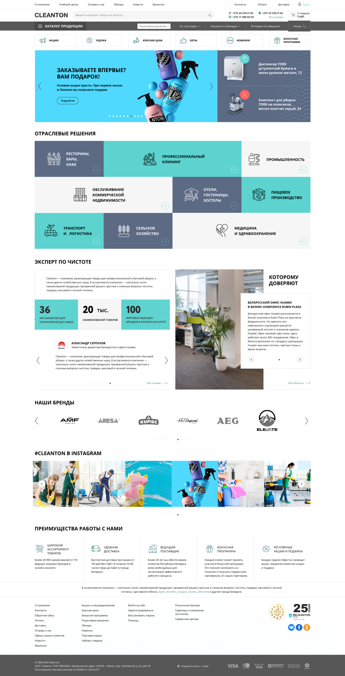 Cleanton стал уже 4 проектом, который мы реализовали для группы компаний Belkanton group после проектов Officeton, Officelife media, Well Desk.