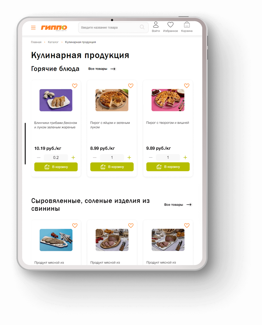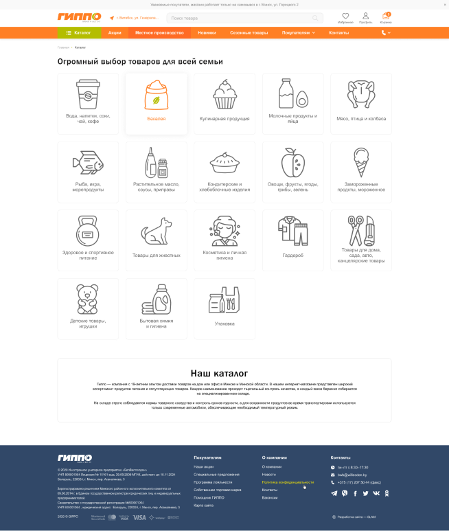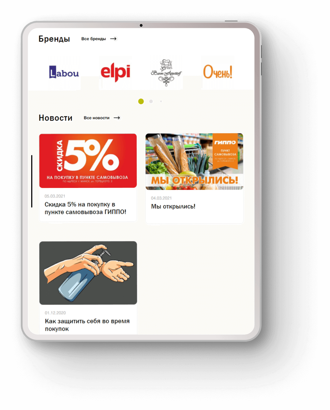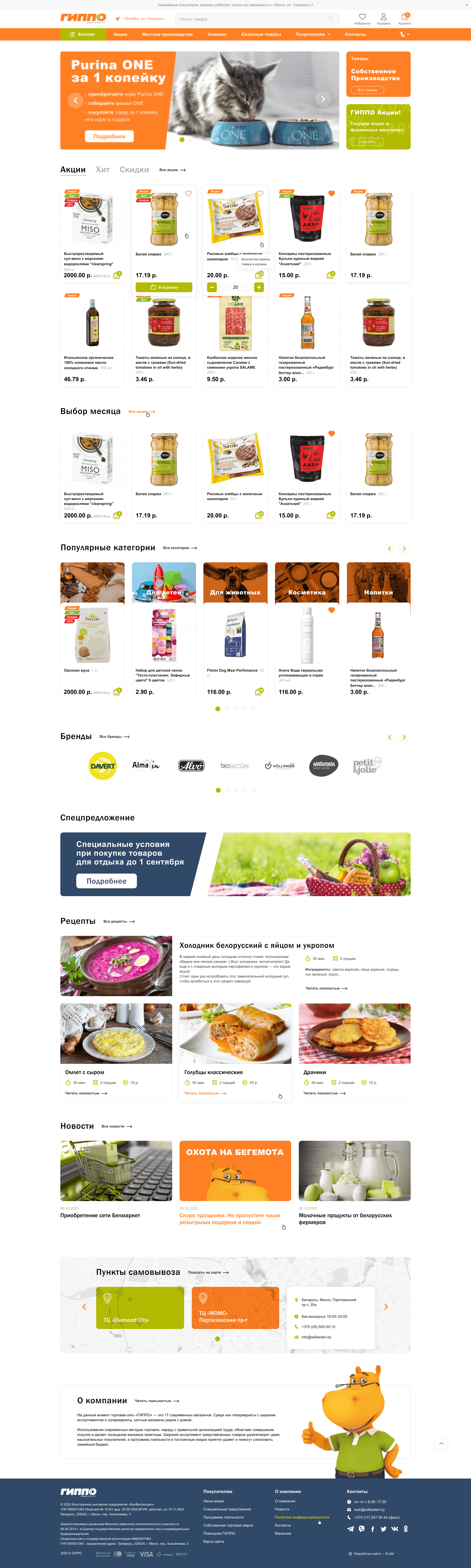 Гиппо market — интернет-магазин продуктовой сети Гиппо. На сайте реализована возможность покупки продуктов онлайн, личного кабинета