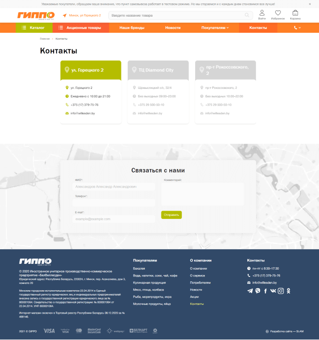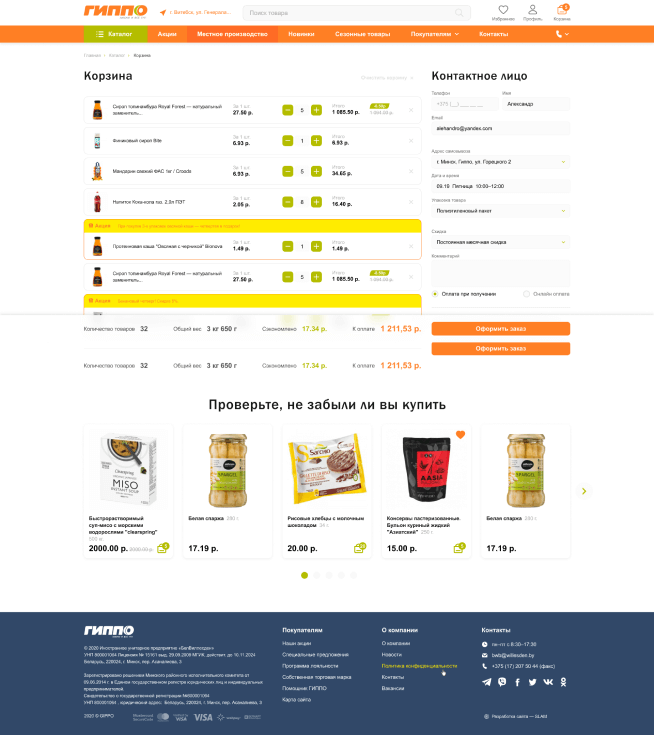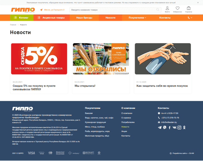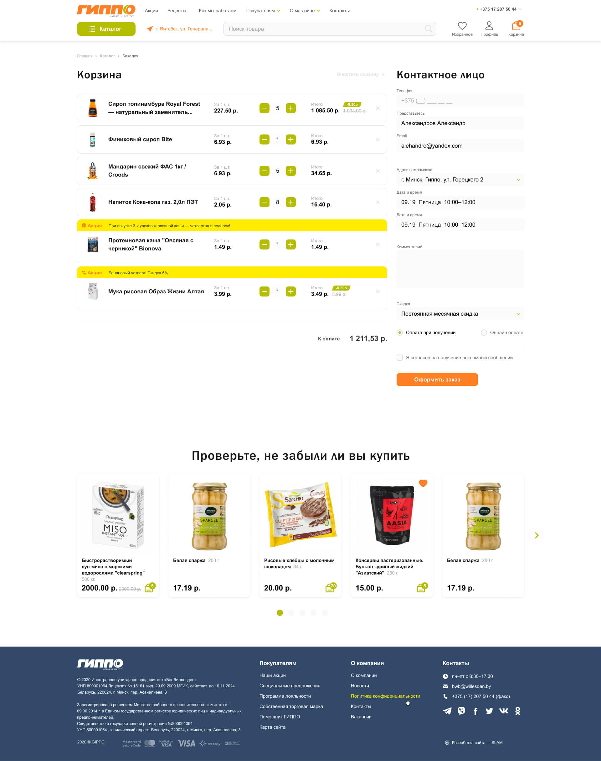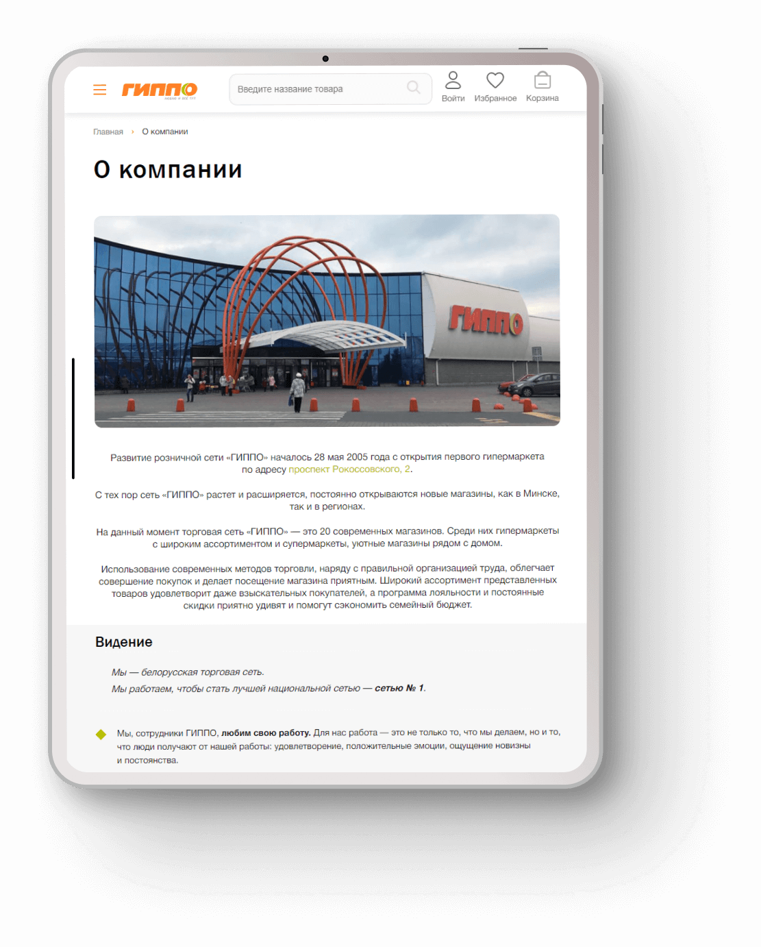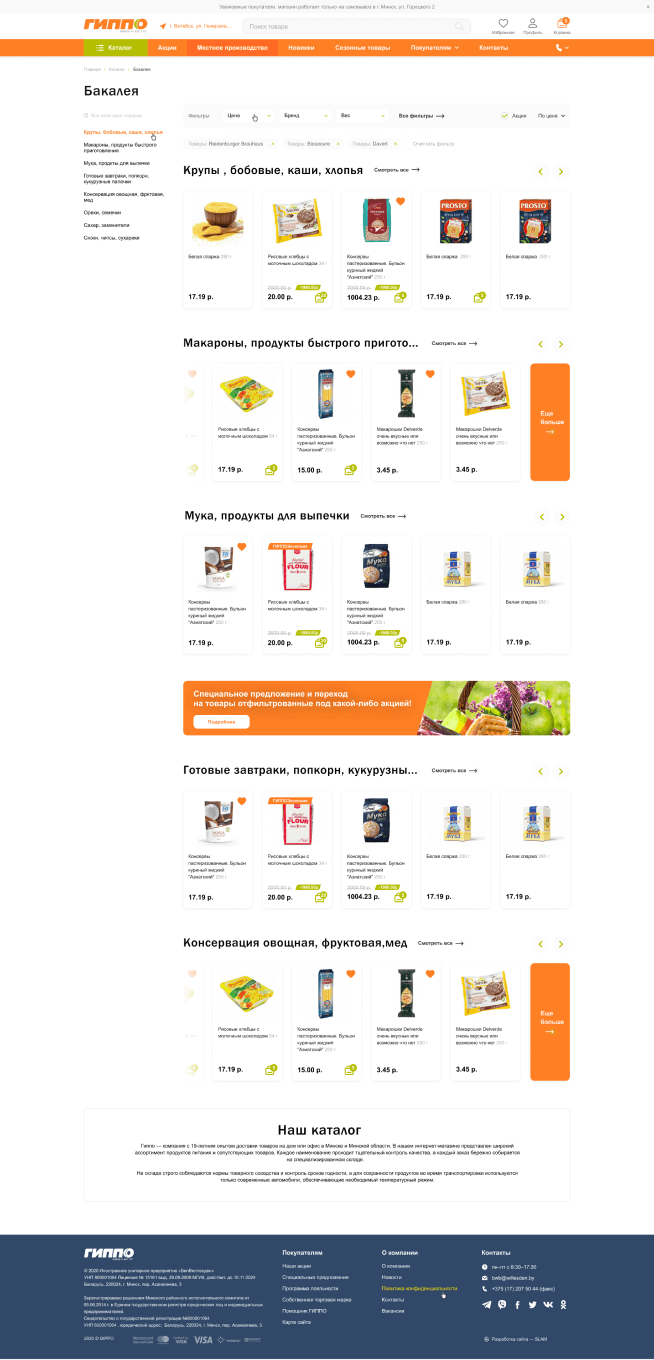 Гиппо market — интернет-магазин продуктовой сети Гиппо. На сайте реализована возможность покупки продуктов онлайн, личного кабинета