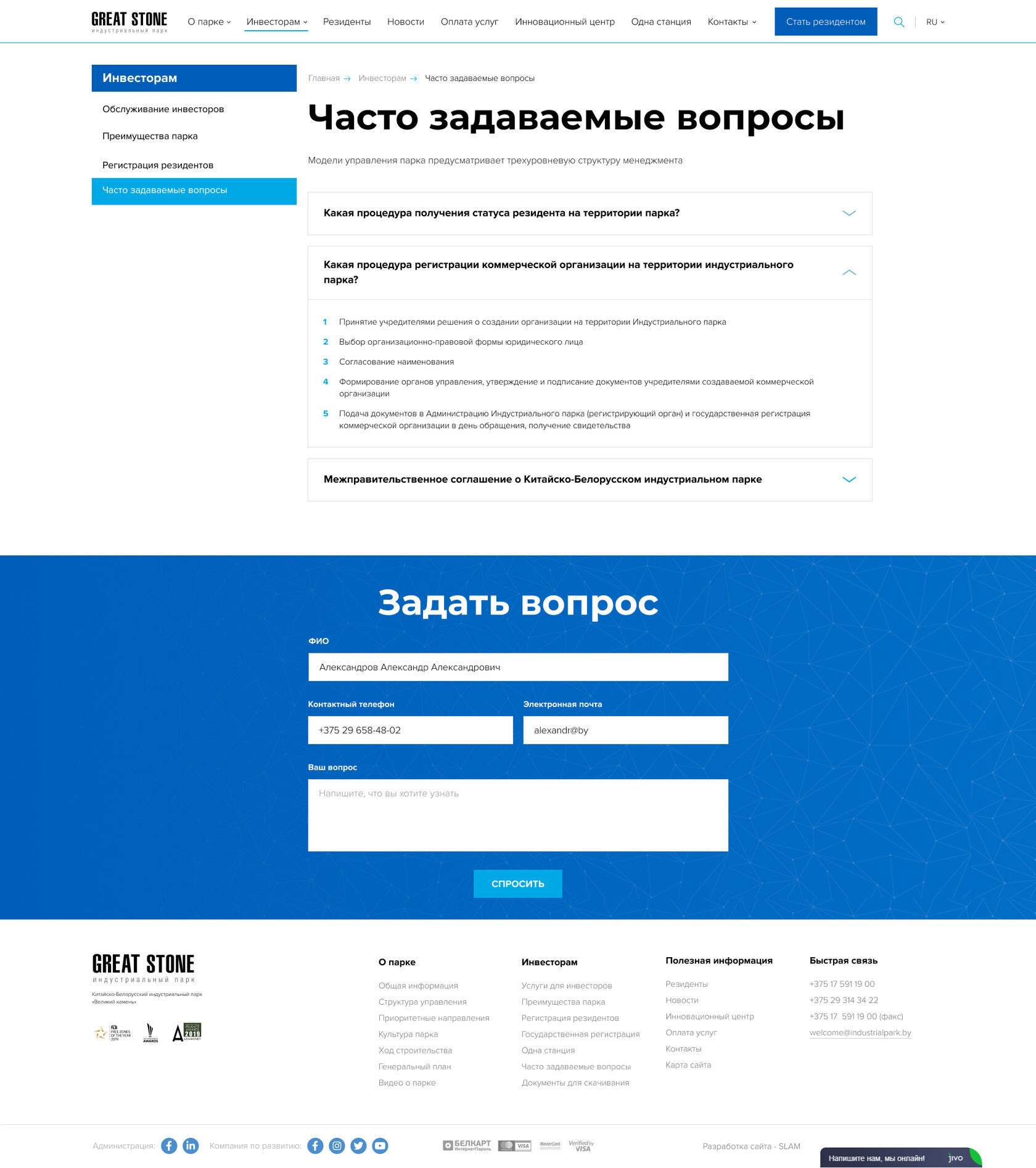 Сайт проекта: https://industrialpark.by/