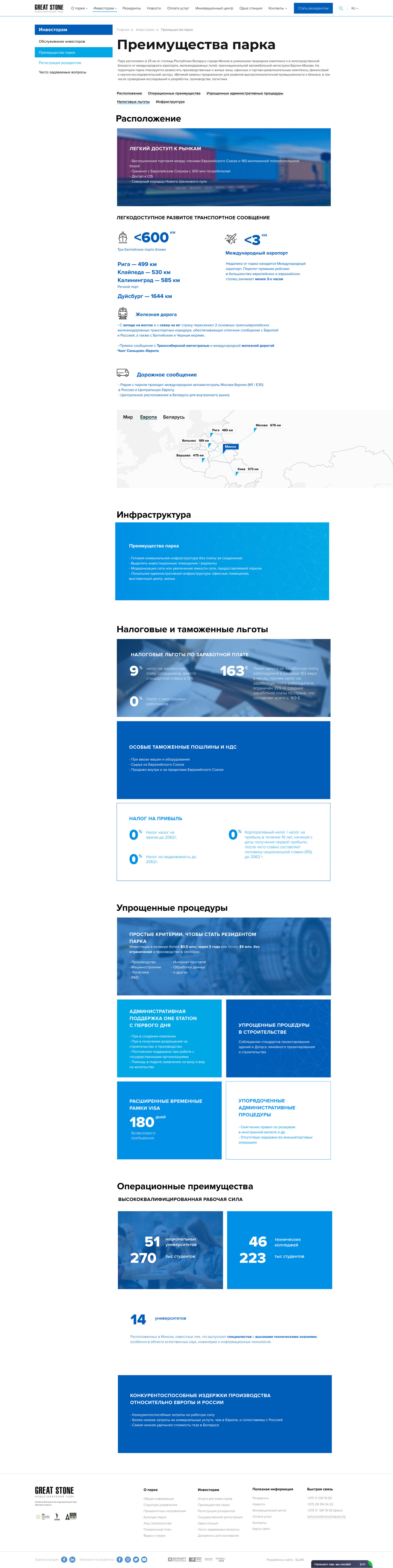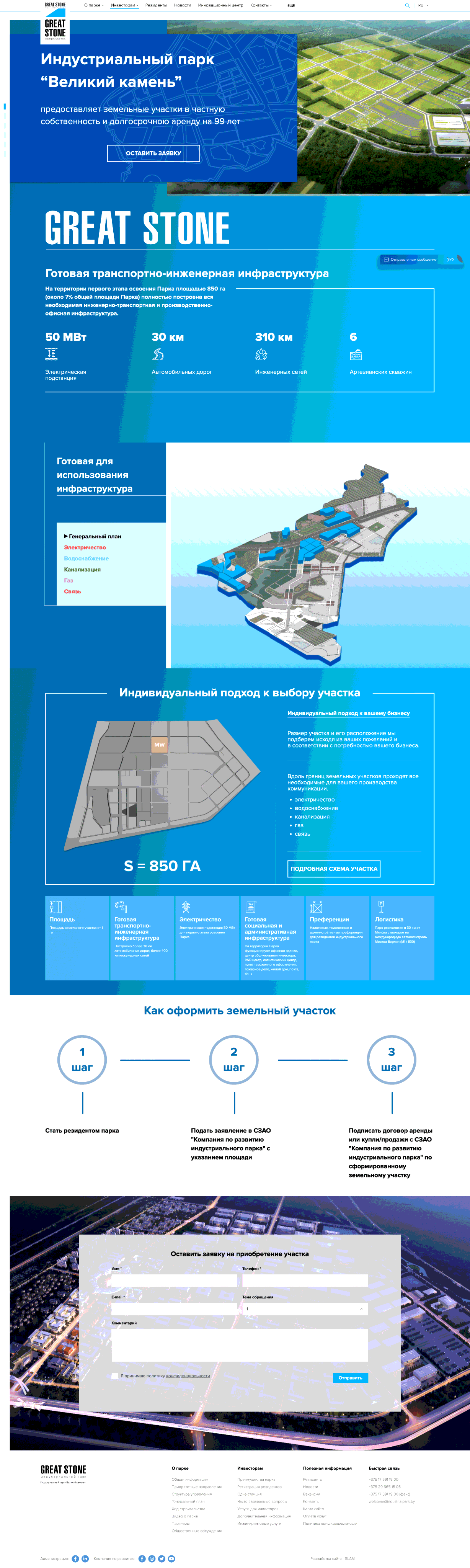 Отдельно для инвесторов мы сделали посадочную страницу https://industrialpark.by/investoram/land_plots/ , посвященную покупке земельных участков в парке. Страница хорошо анимирована и имеет интересную наглядную подачу информации.