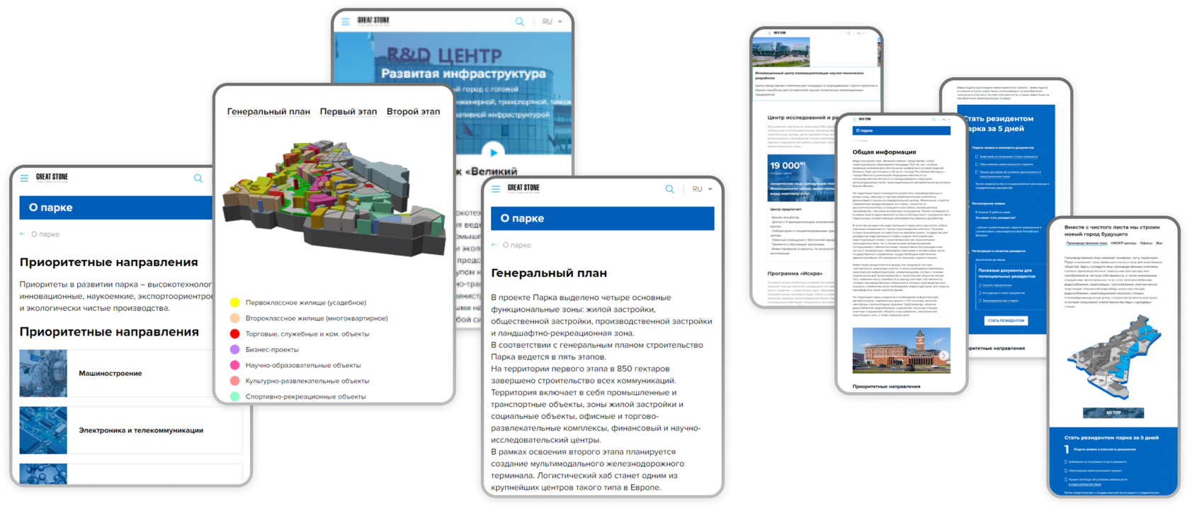 Сайт проходил трехуровневую валидацию руководства парка и почти все макеты были приняты с первого раза. Новый сайт позволил улучшить уравновесить имидж Индустриального парка «Великий камень» в офлайн и онлайн.