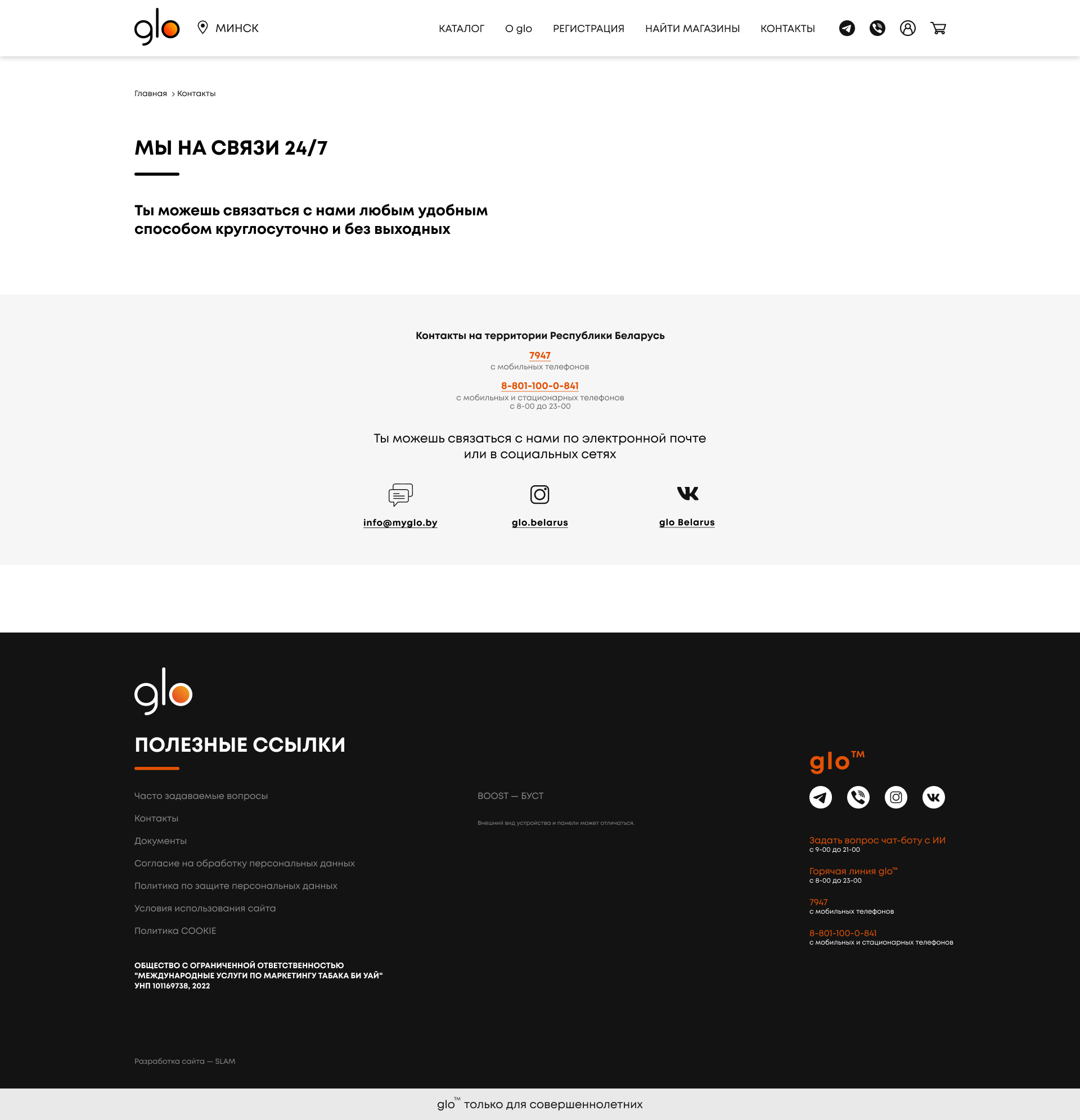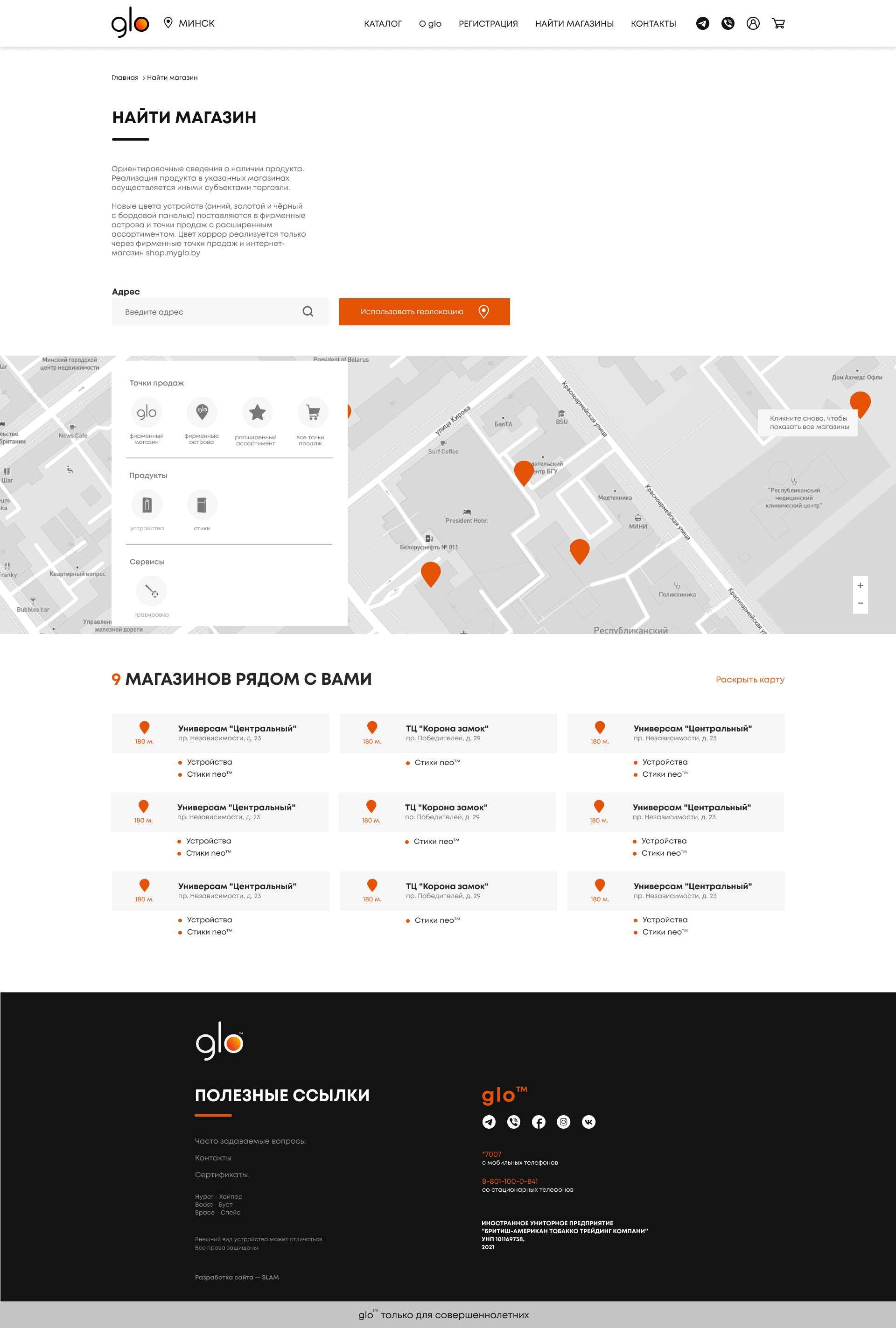 разработка платформы онлайн-продаж устройства glo™ в Беларуси