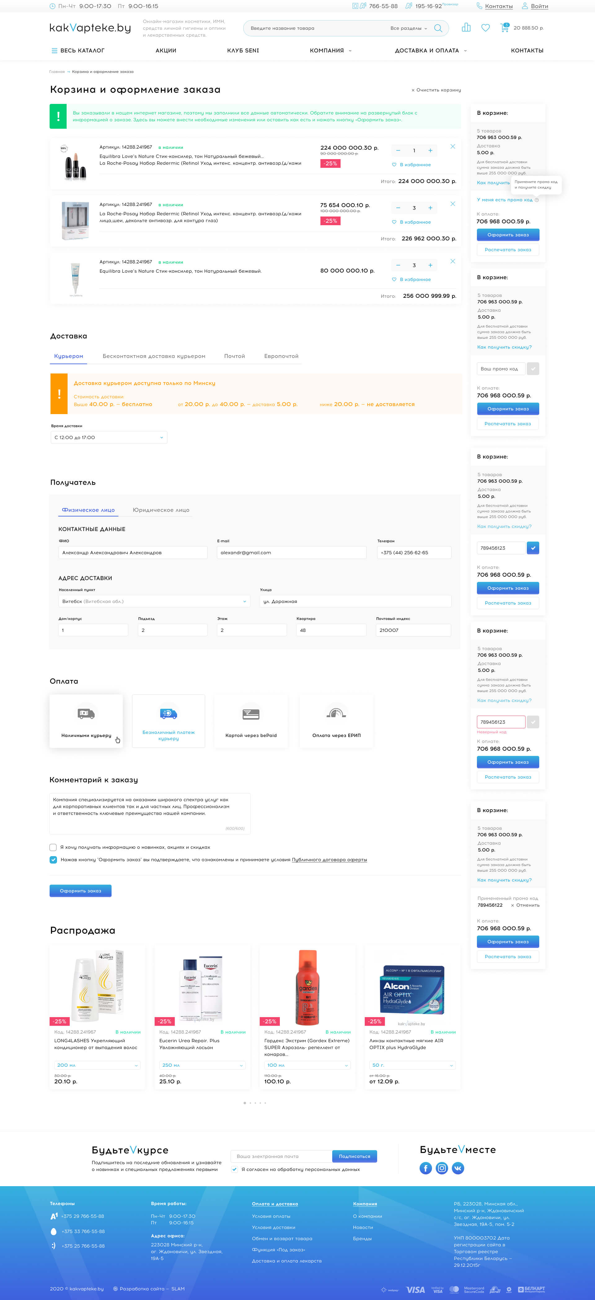 Kakvapteke предлагает своим клиентам много акций, дополнительных подарков к заказам – нужно было предусмотреть возможность показывать акции везде, где это возможно.