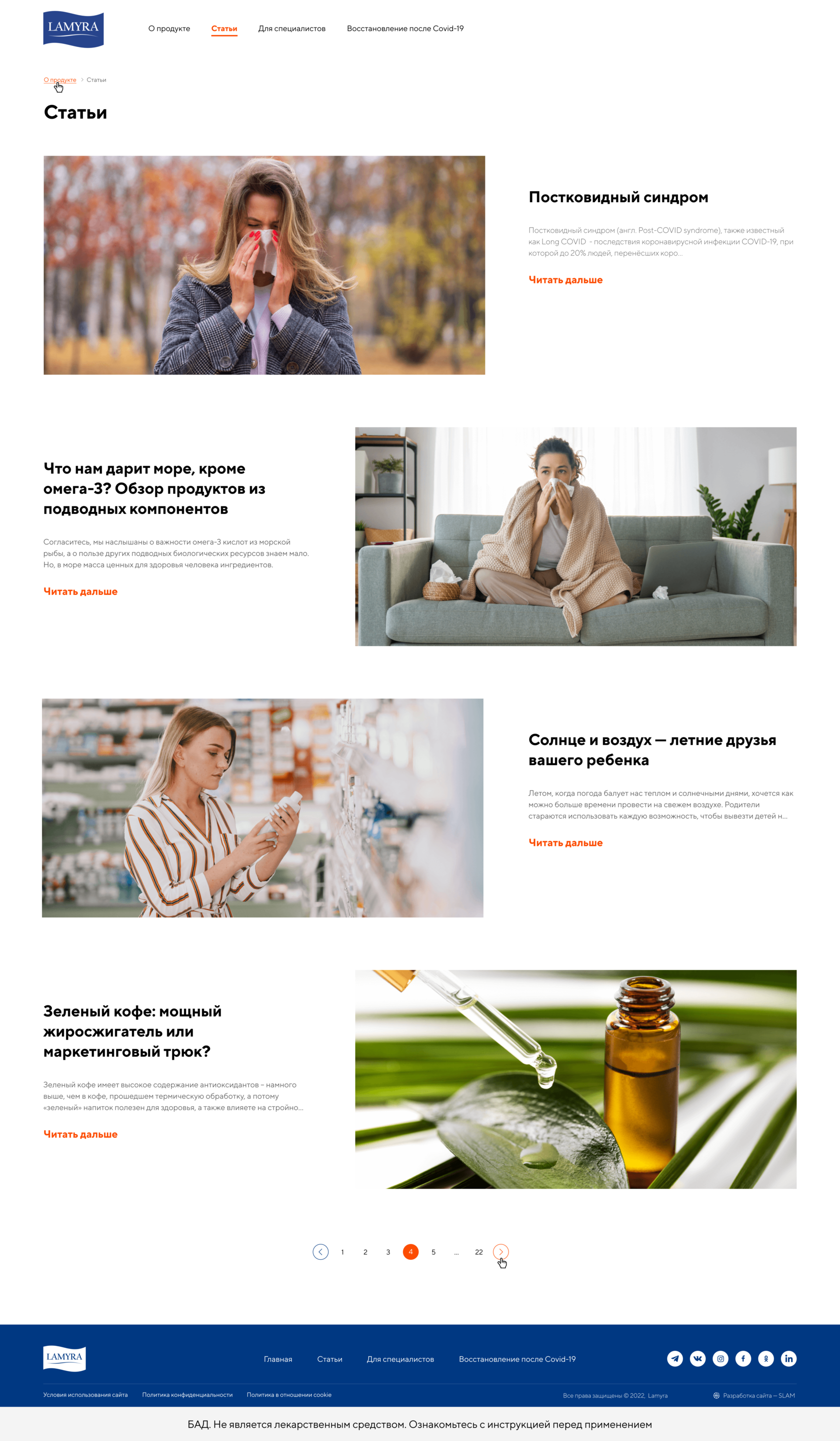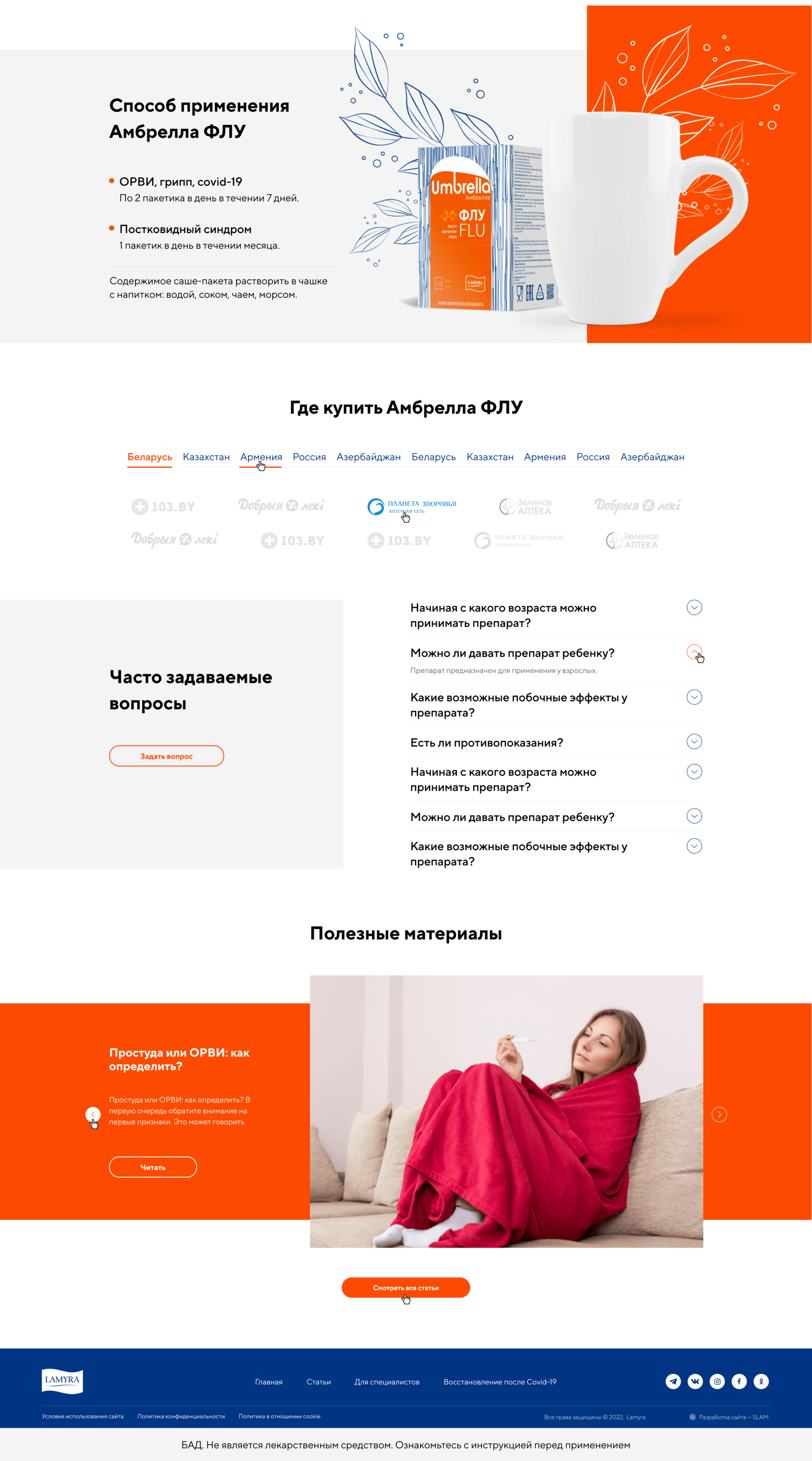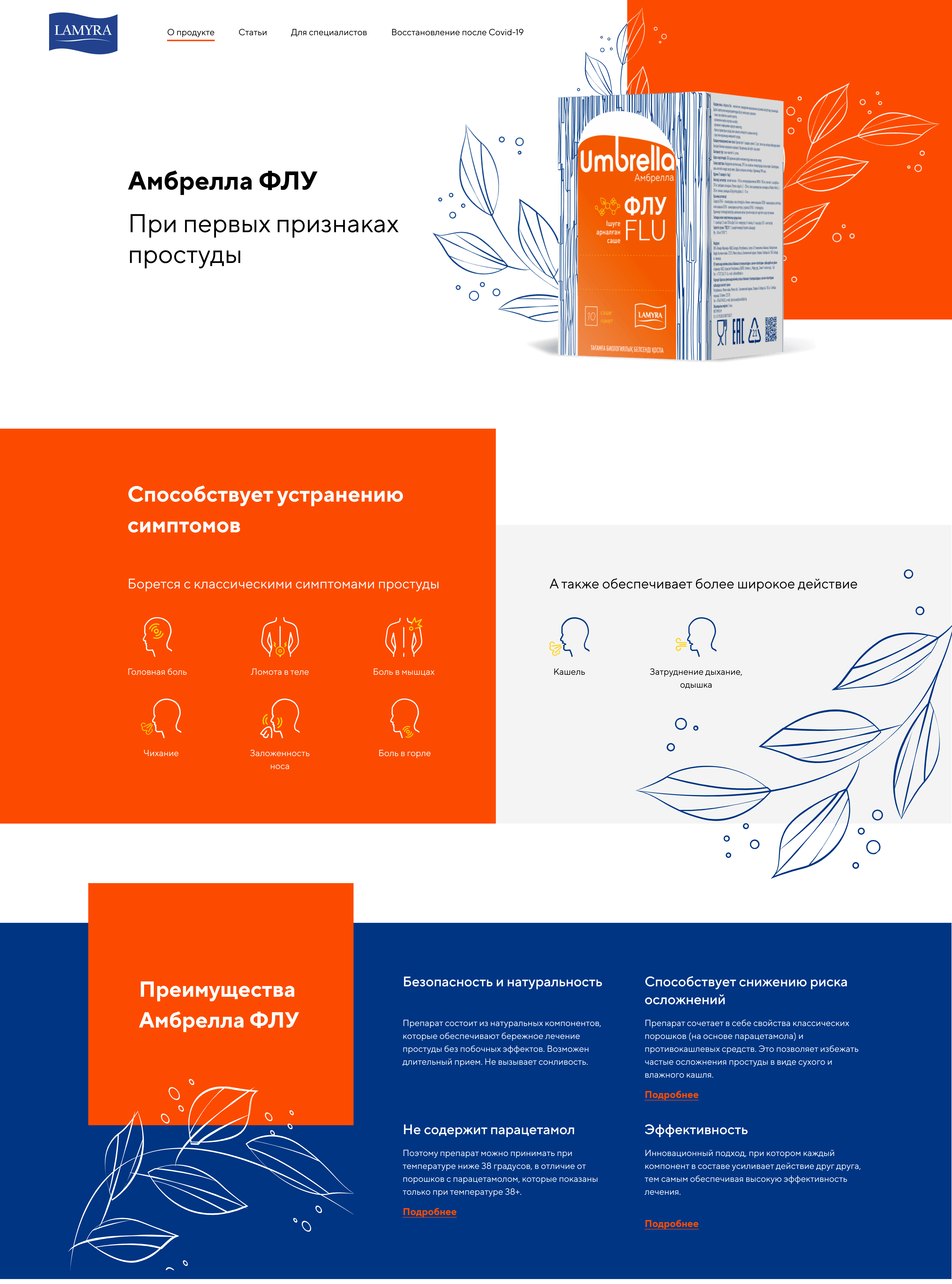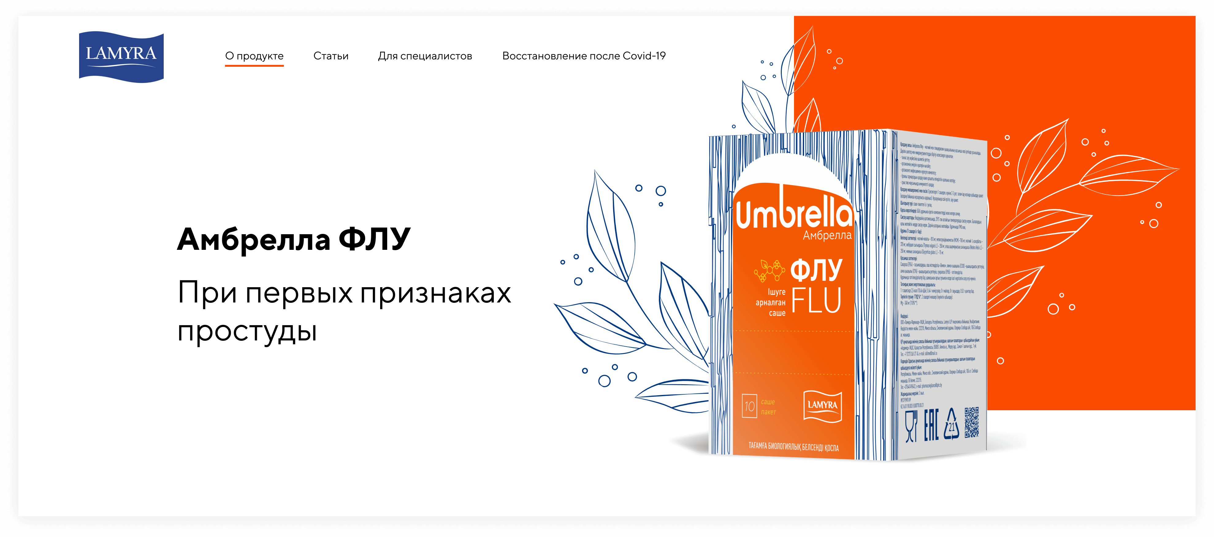 Имиджевый сайт продукта от компании LAMYRA, презентующий потребителю сам продукт, его ключевые свойства, а также формирующий экспертность и доверие к бренду LAMYRA в глазах потребителей.