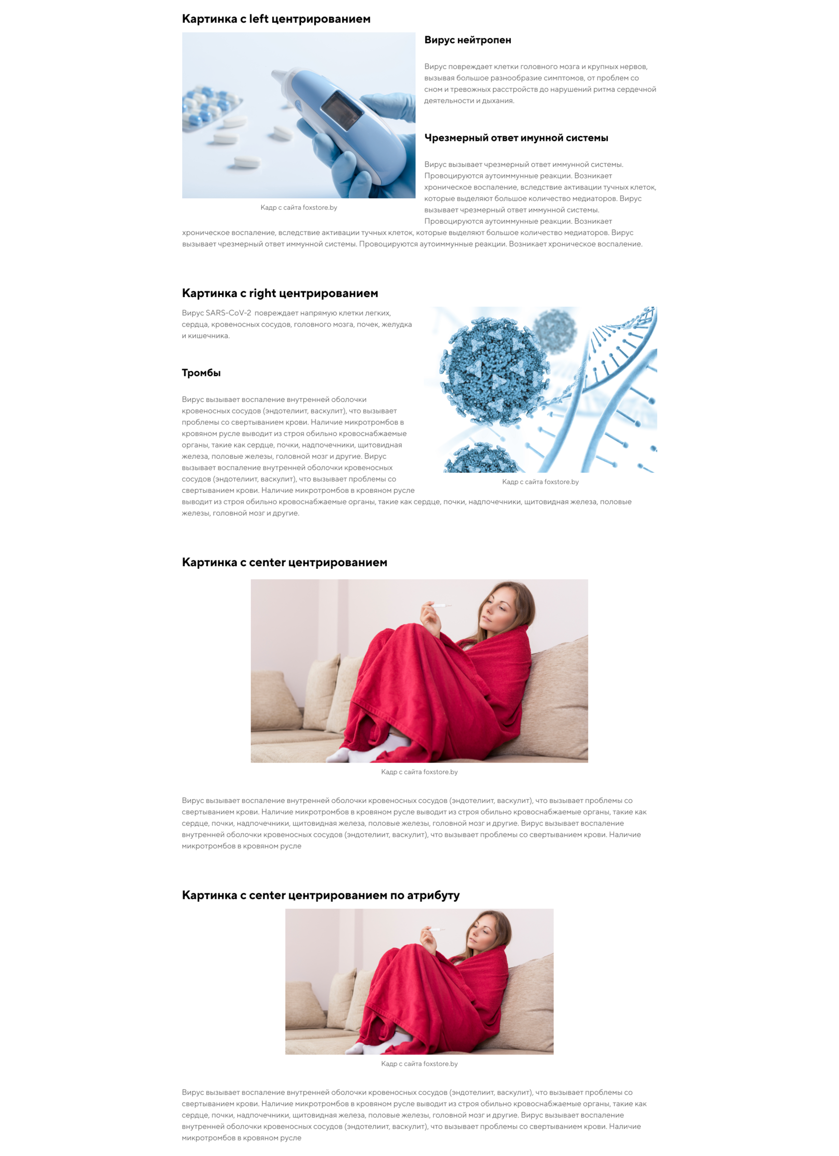 Детальная страница статей также должна была привлекать внимание, быть максимально редактируемой с применением разных стилей. Мы отрисовали и заложили в разметку все возможные варианты оформления текстовых блоков и изображений.