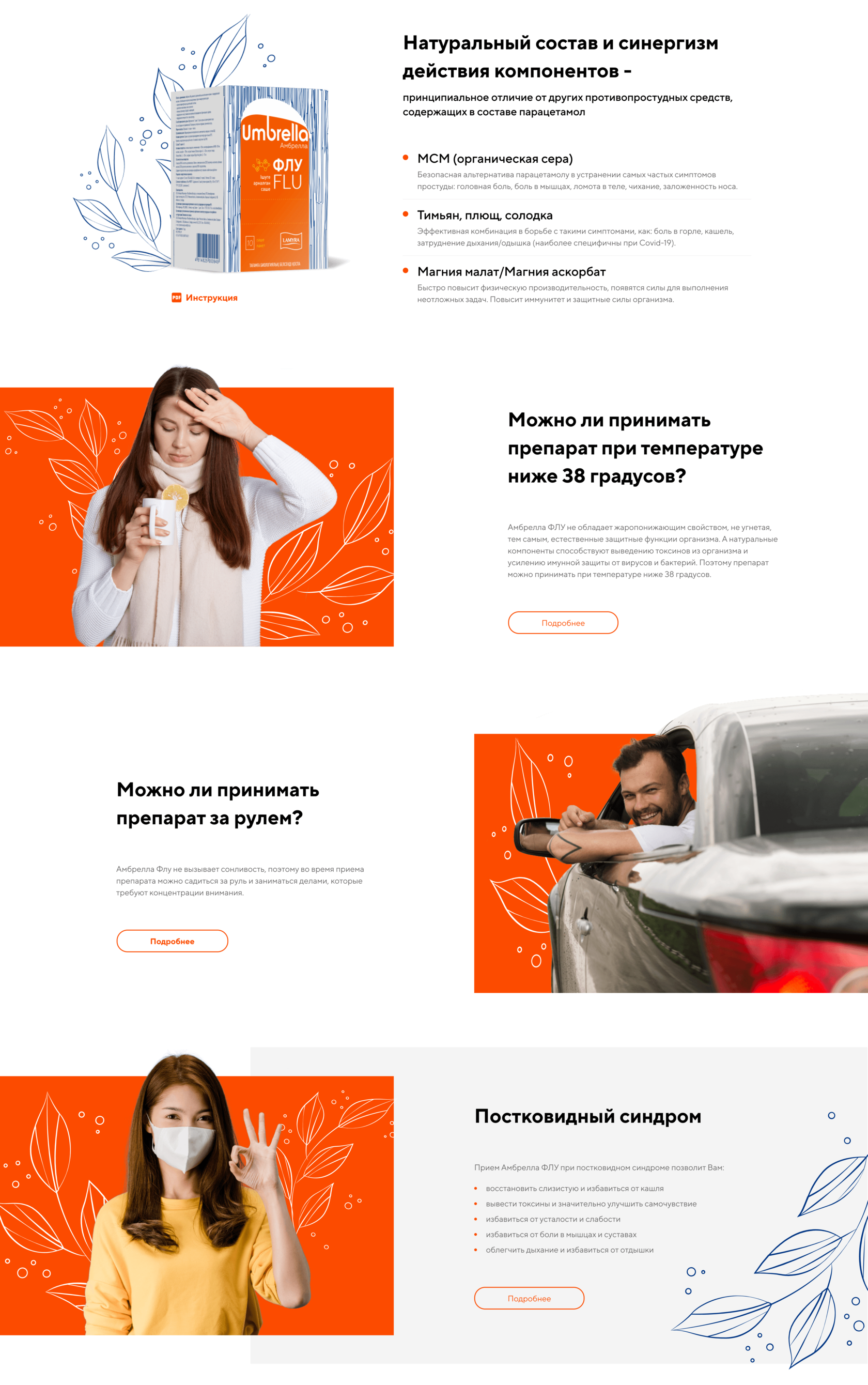 информативных блоков, которые носят иллюстративный характер, либо ведут на статьи о продукте или на медицинскую тематику;