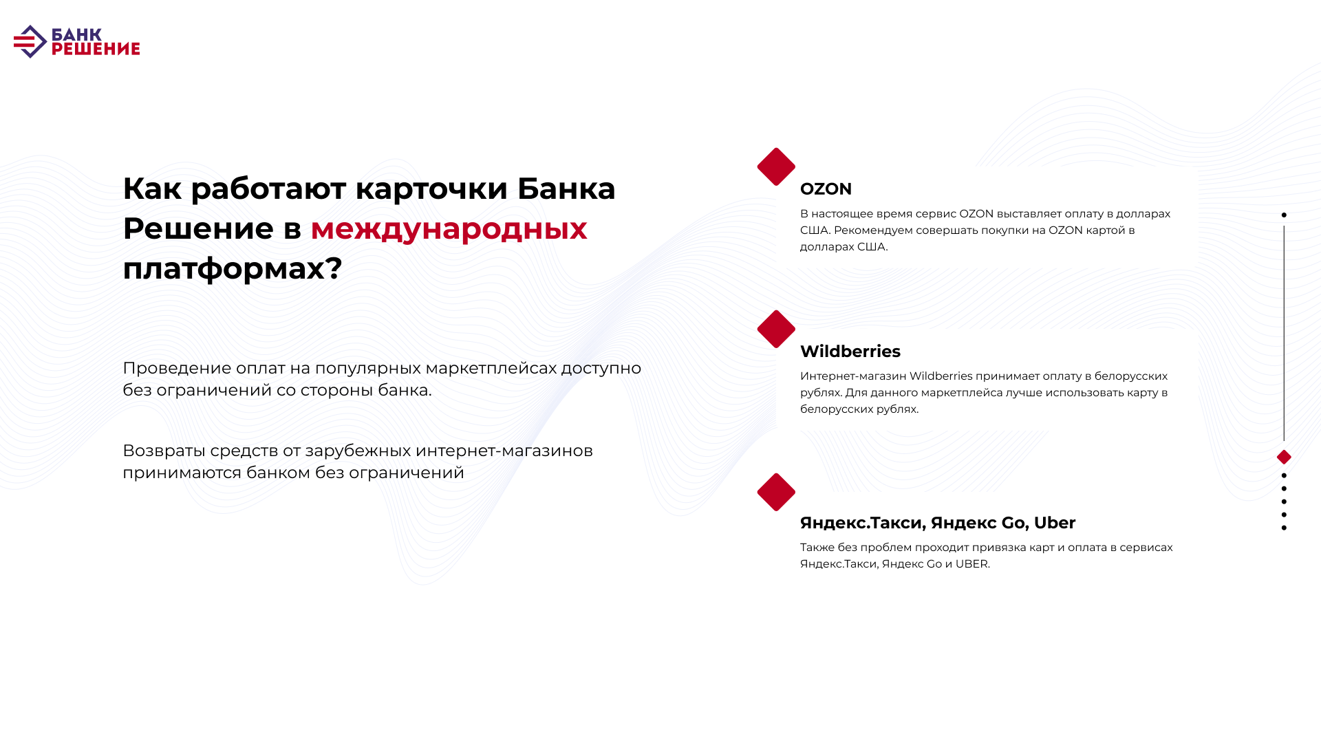 В условиях проблем с работой сервисов и платежей в 2022 году, Банк решил сделать отдельную страницу для своих клиентов, чтобы рассказать, как работают сервисы и продукты банка.