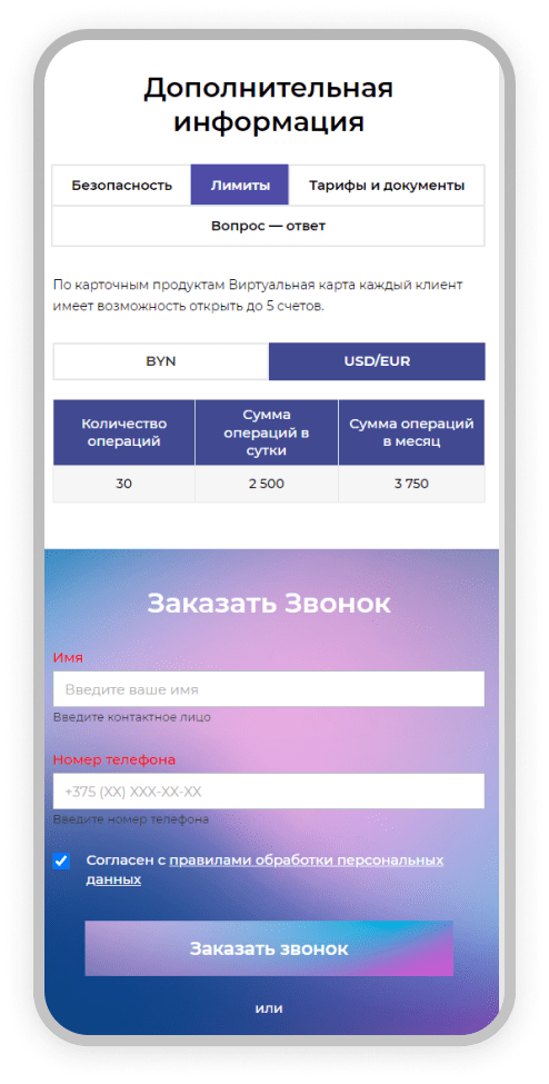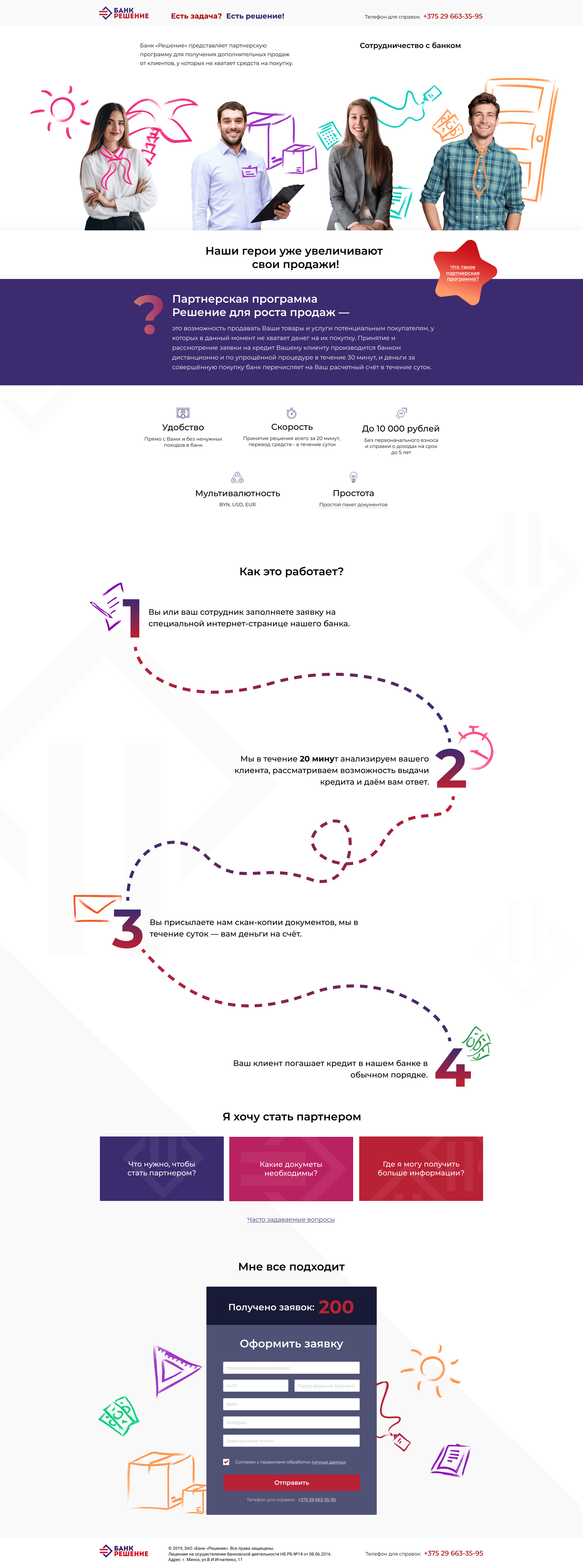 Уже знакомый и проверенный на двух продуктах метод подачи информации мы использовали и для запуска посадочной страницы по Партнерской программе банка.