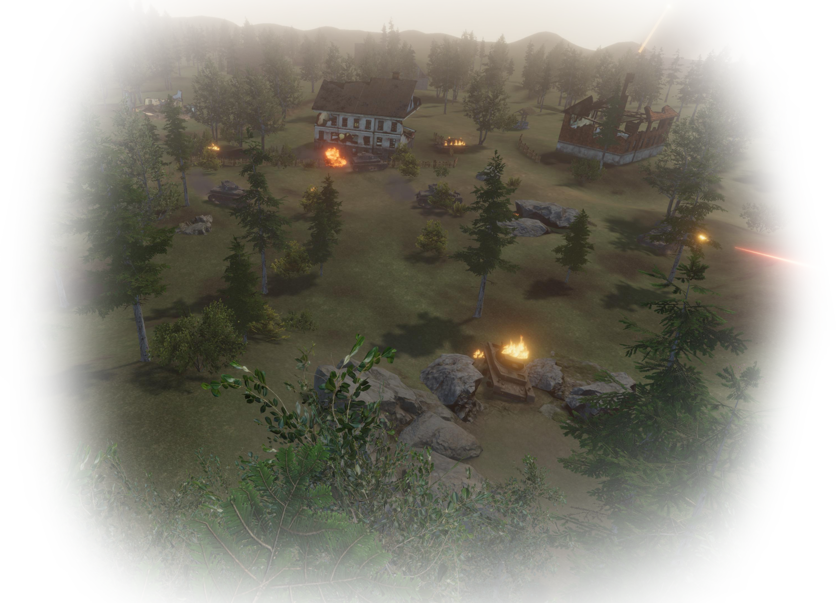 Вражеские самолеты атакуют завод. На заводе собирают важную технику для отправки на фронт. Технику повезут на поезде, который вот-вот отправится. Задача игрока: наряду с 2 ботами-партнерами защитить сначала завод от бомбардировки, а позднее отправляющийся поезд.