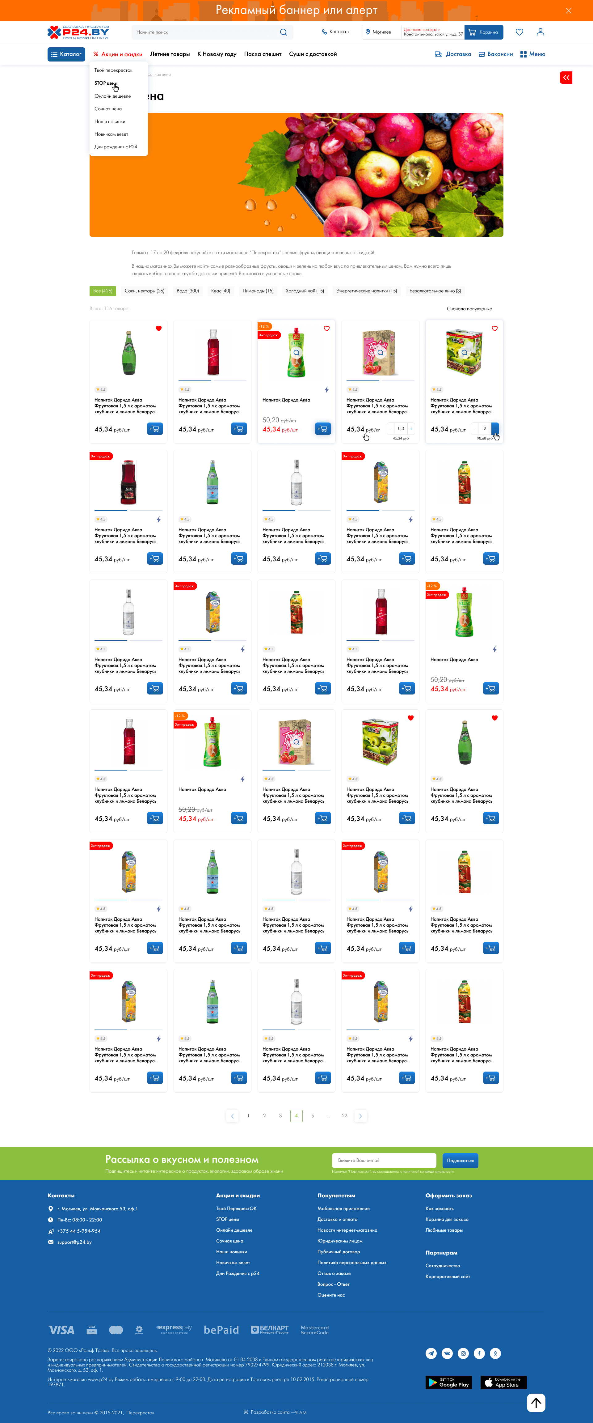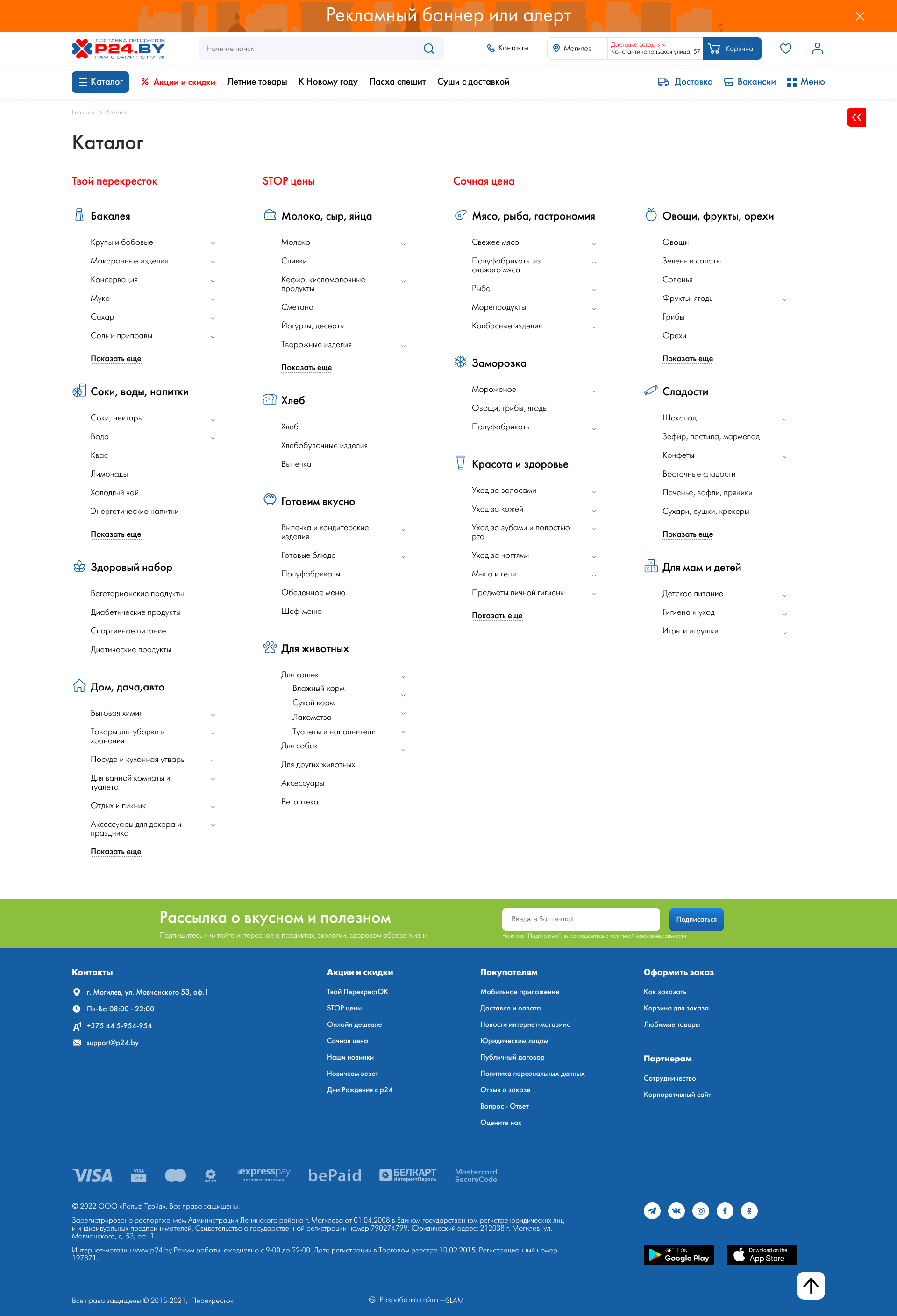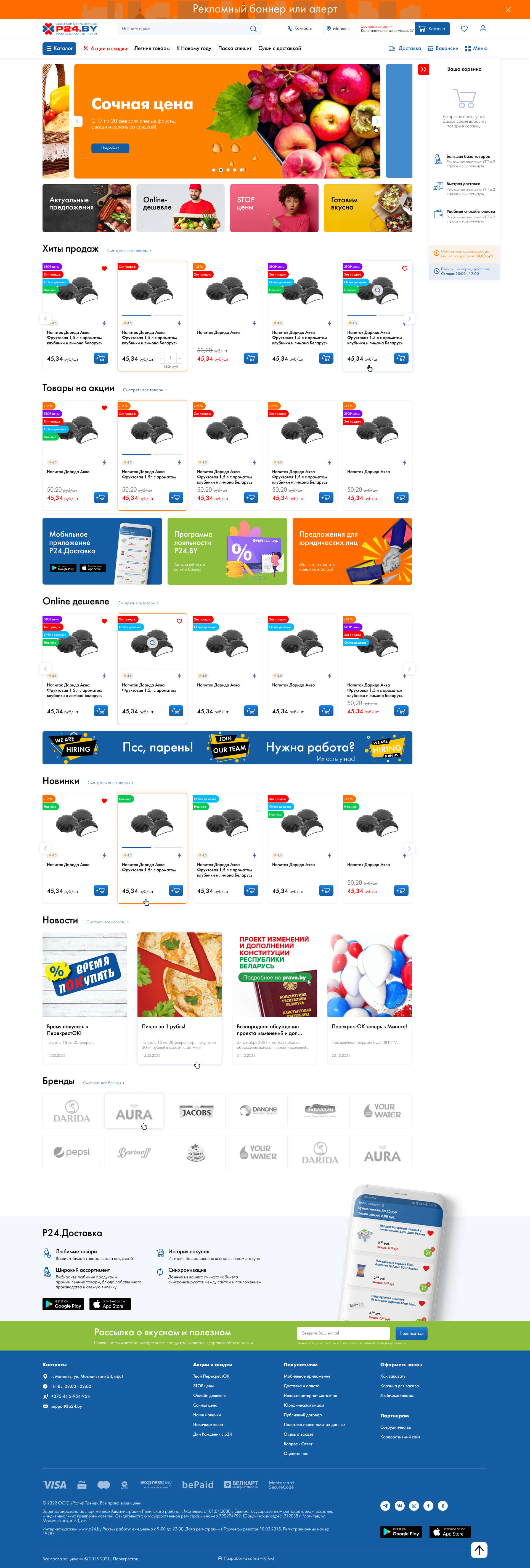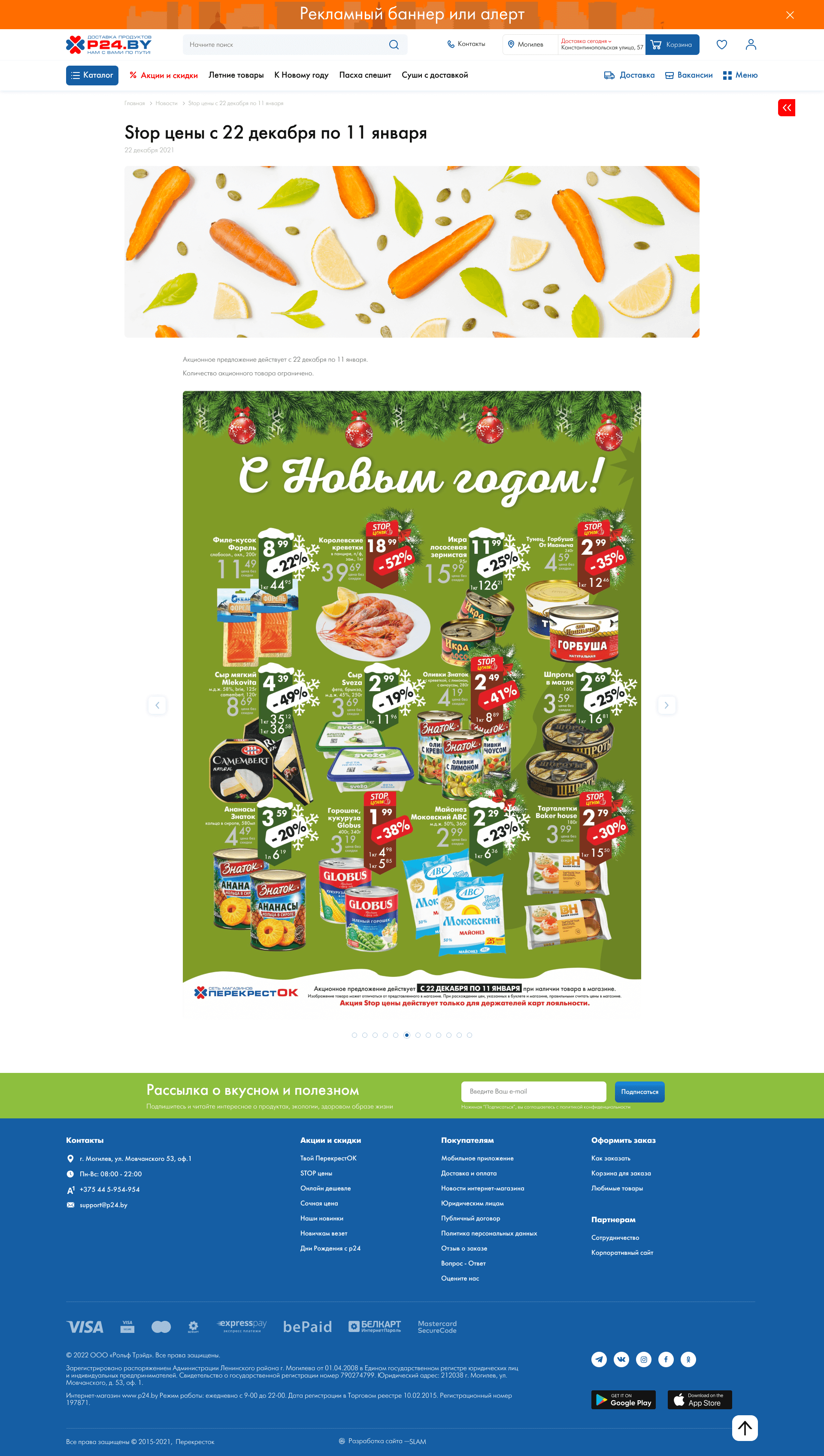 Запуск сайта для компании Перекресток 24 позволил ей выйти на новый уровень удобства сервисов доставки продуктов. Обилие функционала и настроек сайта позволяет Администраторам, контент-менеджерам и прочим заинтересованным лицам гибко настраивать свой интернет-магазин и применять современные подходы к маркетингу. Доработка сайта, а также его техническая поддержка продолжается и по сей день.