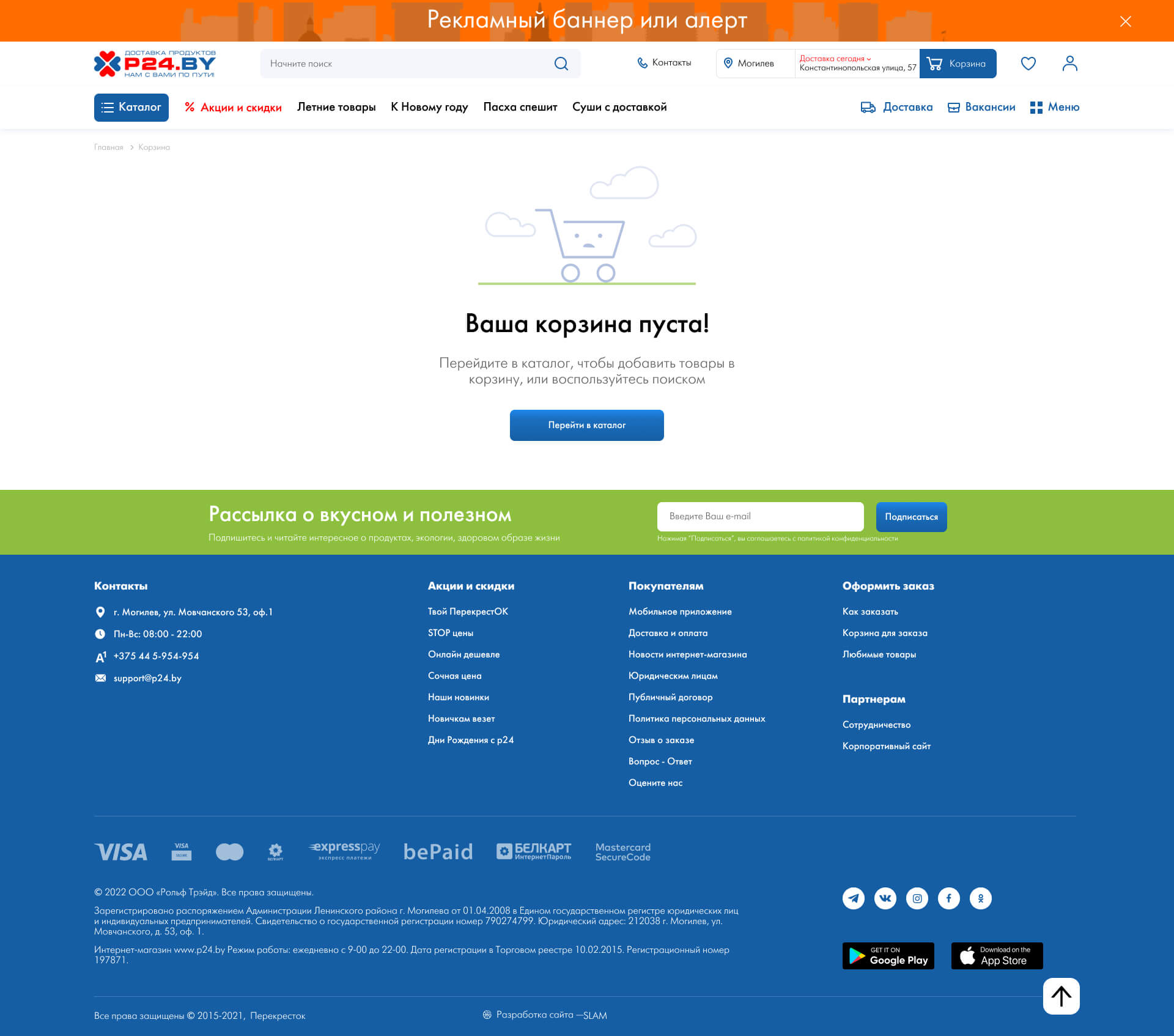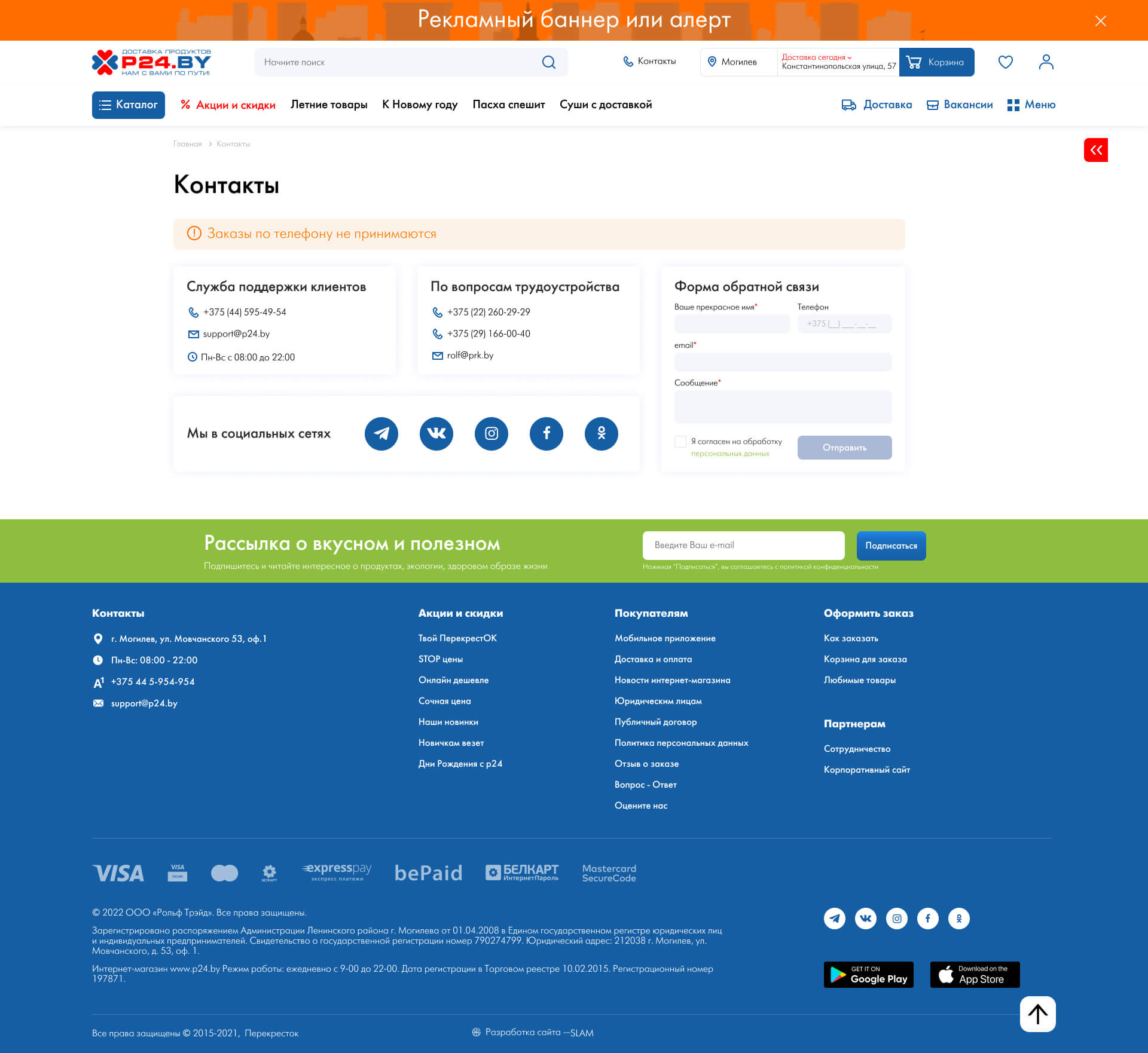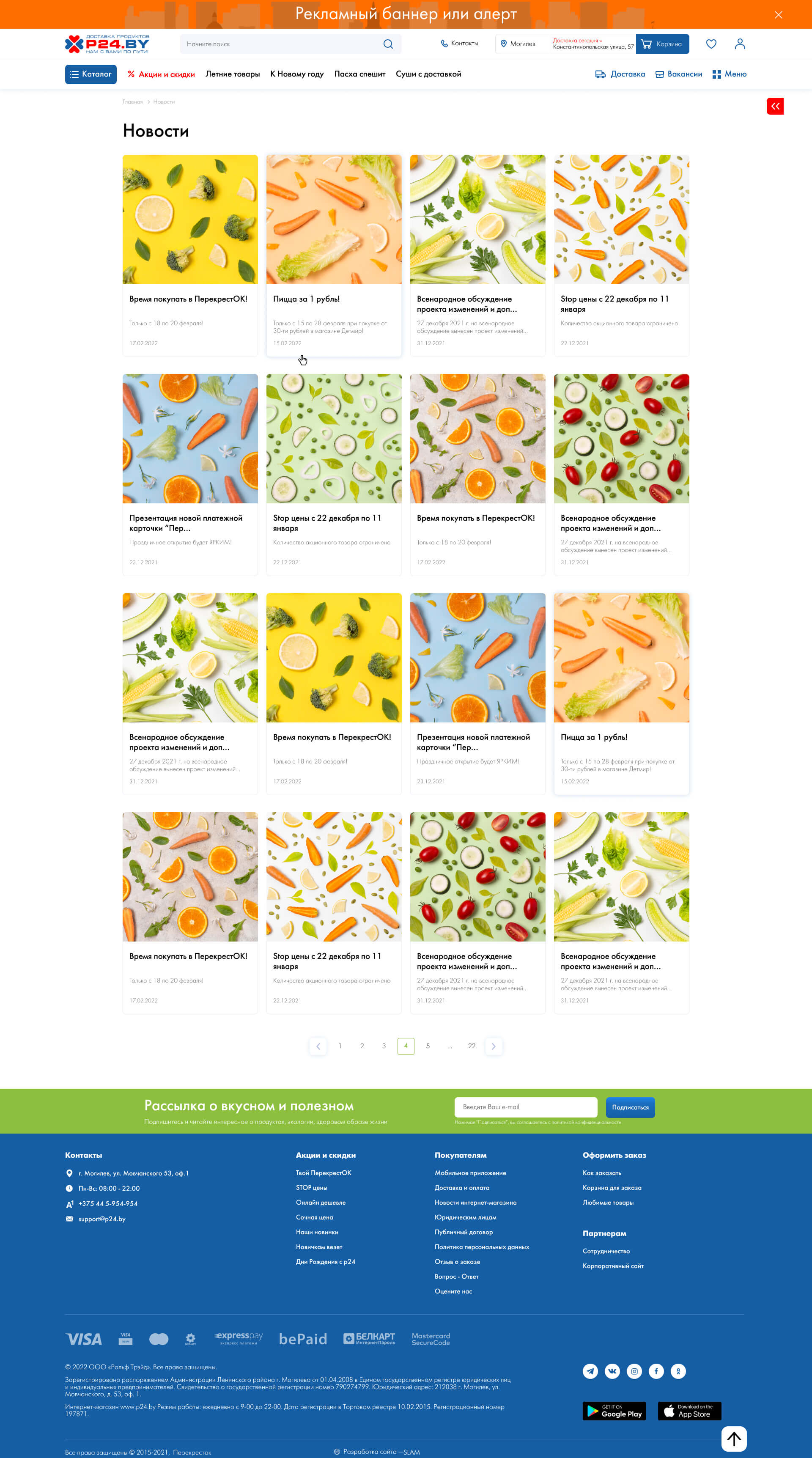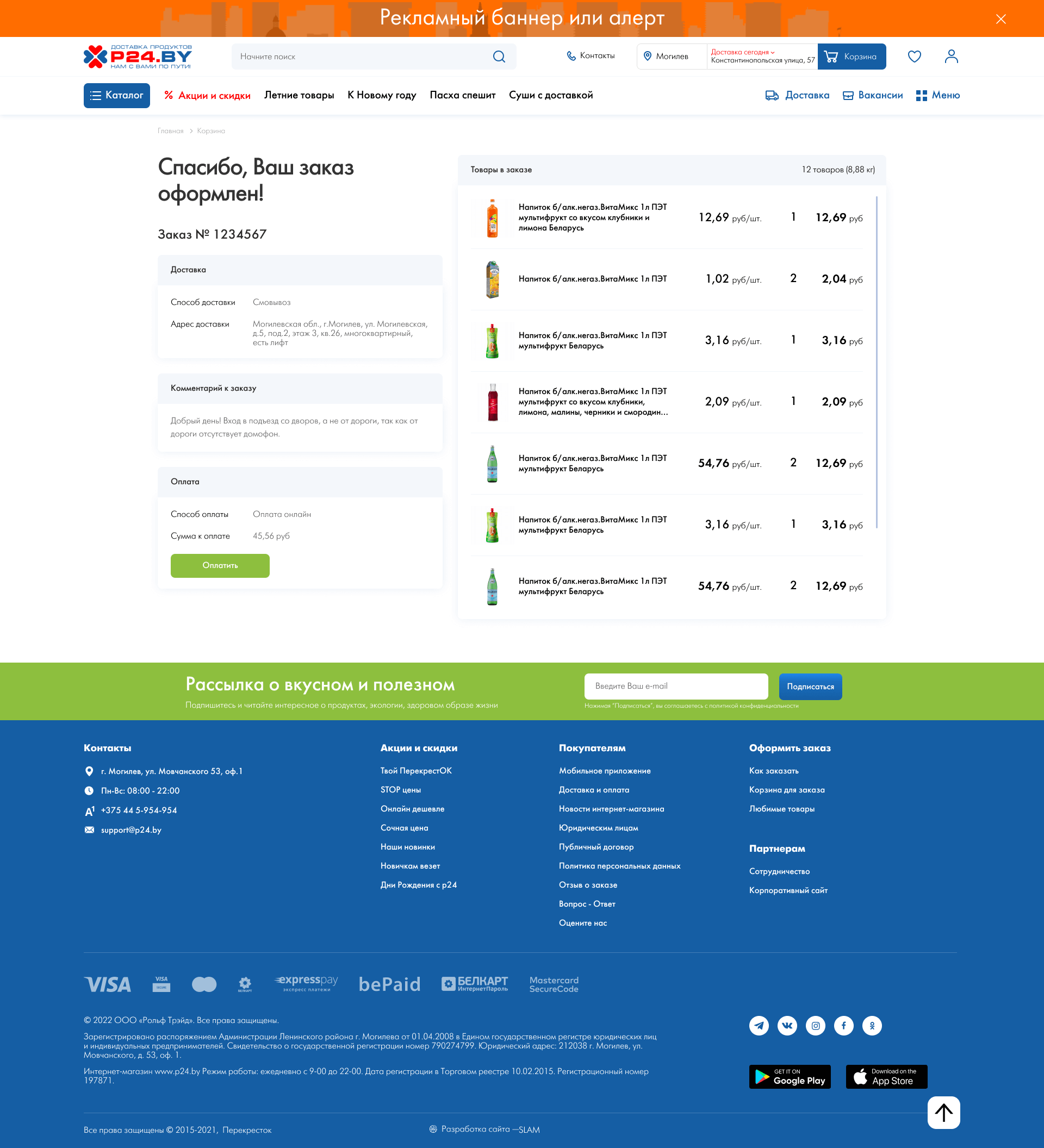 Запуск сайта для компании Перекресток 24 позволил ей выйти на новый уровень удобства сервисов доставки продуктов. Обилие функционала и настроек сайта позволяет Администраторам, контент-менеджерам и прочим заинтересованным лицам гибко настраивать свой интернет-магазин и применять современные подходы к маркетингу. Доработка сайта, а также его техническая поддержка продолжается и по сей день.