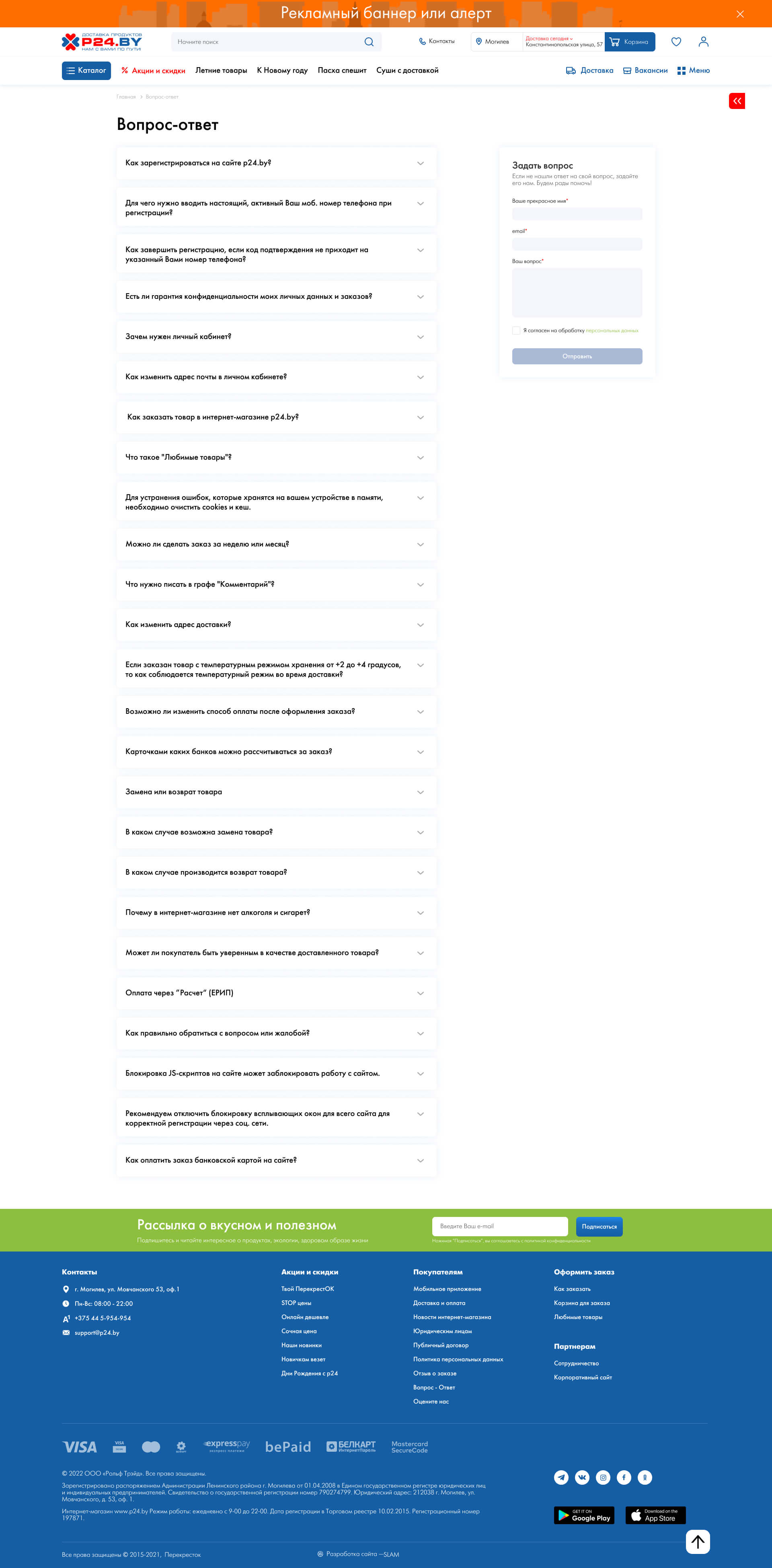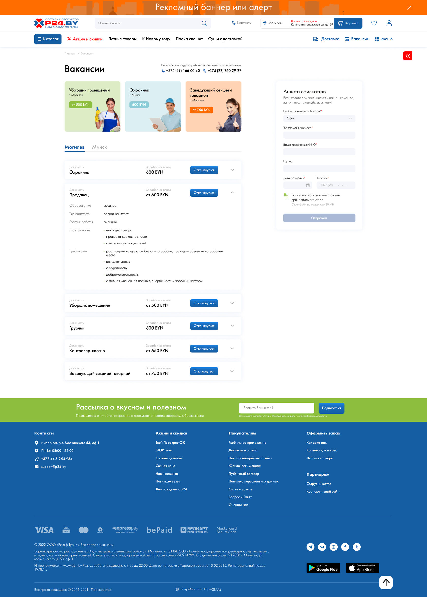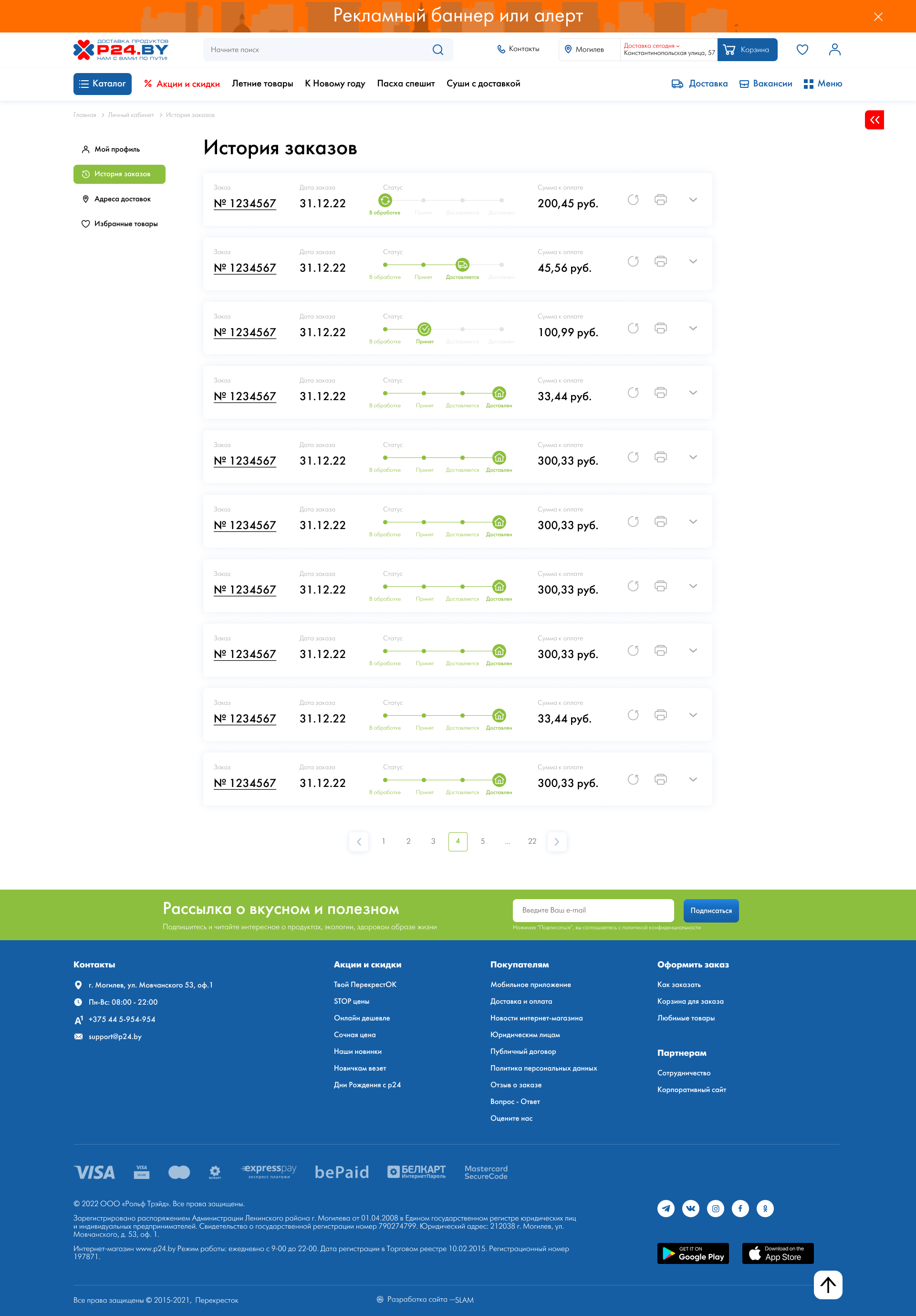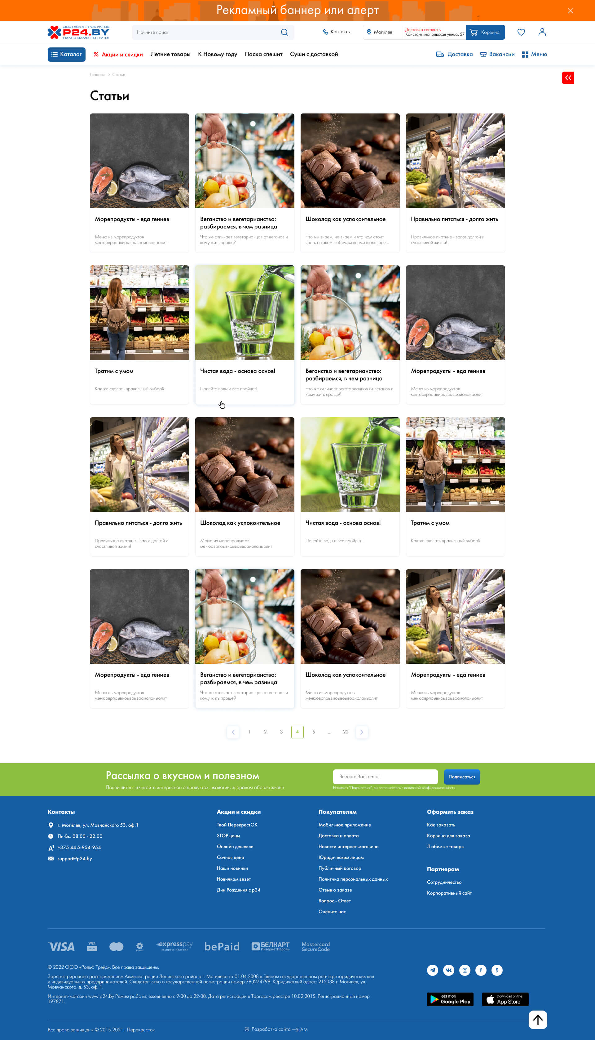 Запуск сайта для компании Перекресток 24 позволил ей выйти на новый уровень удобства сервисов доставки продуктов. Обилие функционала и настроек сайта позволяет Администраторам, контент-менеджерам и прочим заинтересованным лицам гибко настраивать свой интернет-магазин и применять современные подходы к маркетингу. Доработка сайта, а также его техническая поддержка продолжается и по сей день.