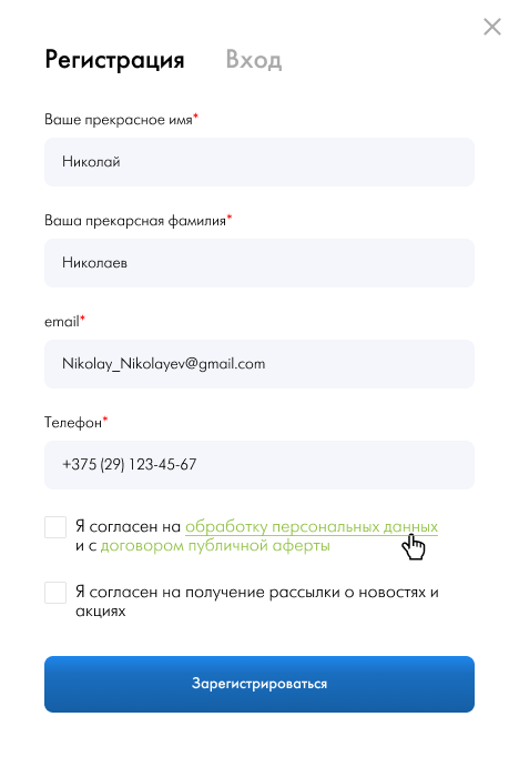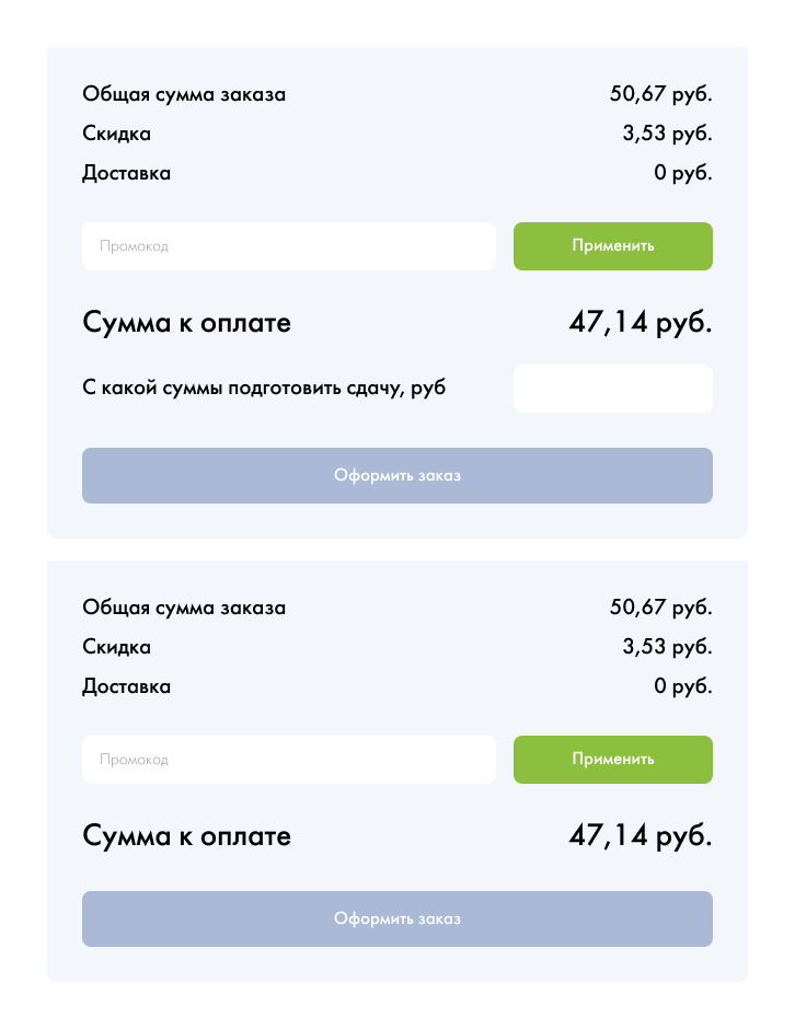 Мы сделали одношаговое оформление заказа и предусмотрели:
