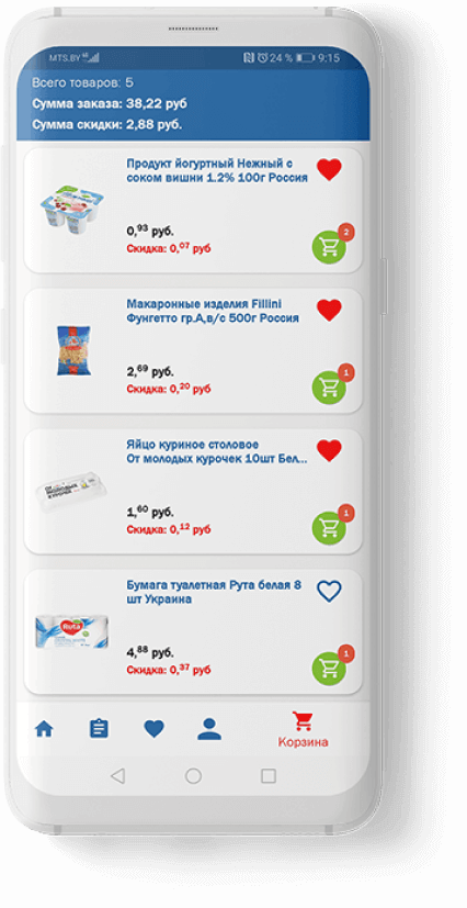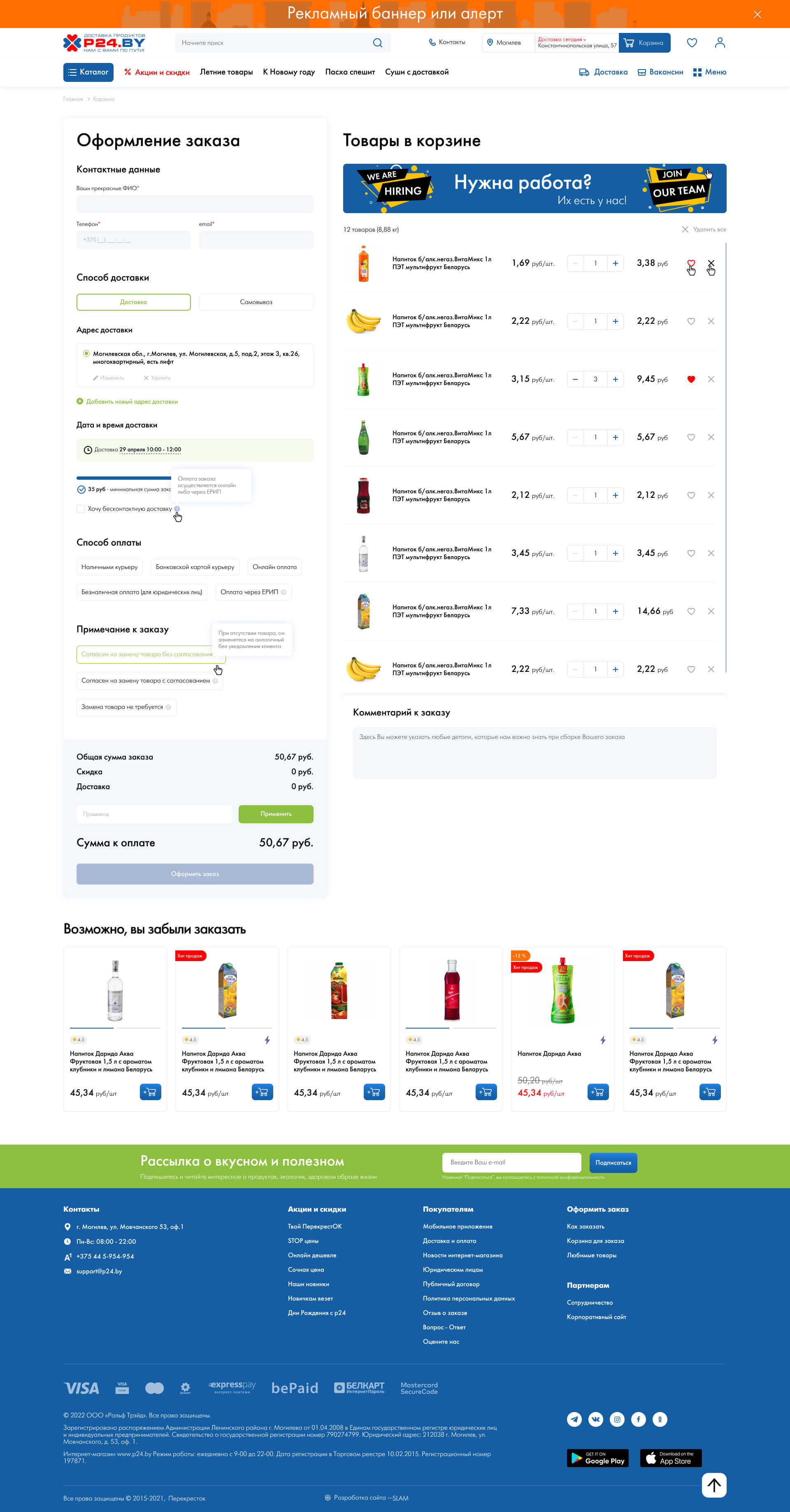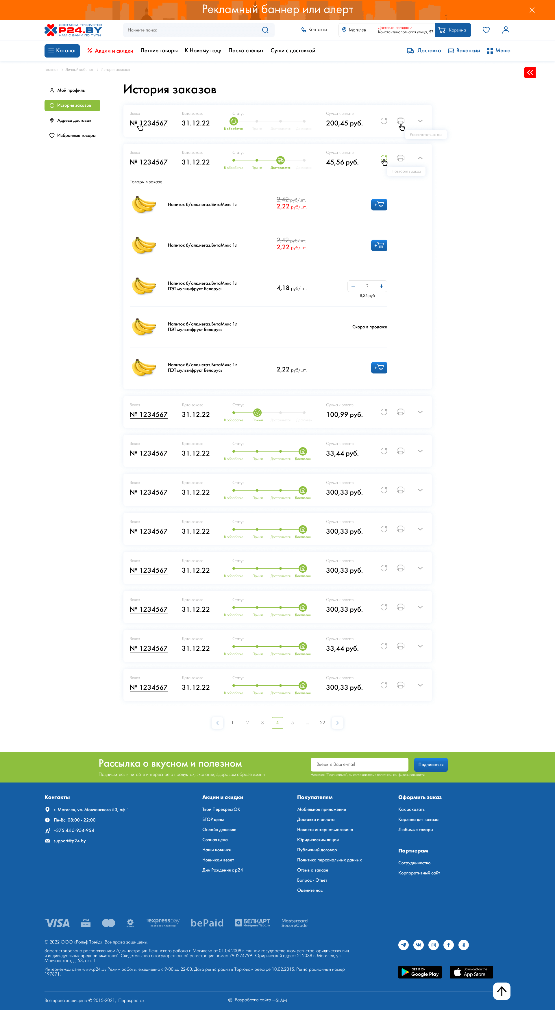 - Интеграция с БелТрансСпутник для передачи заказов в сервис доставки.
