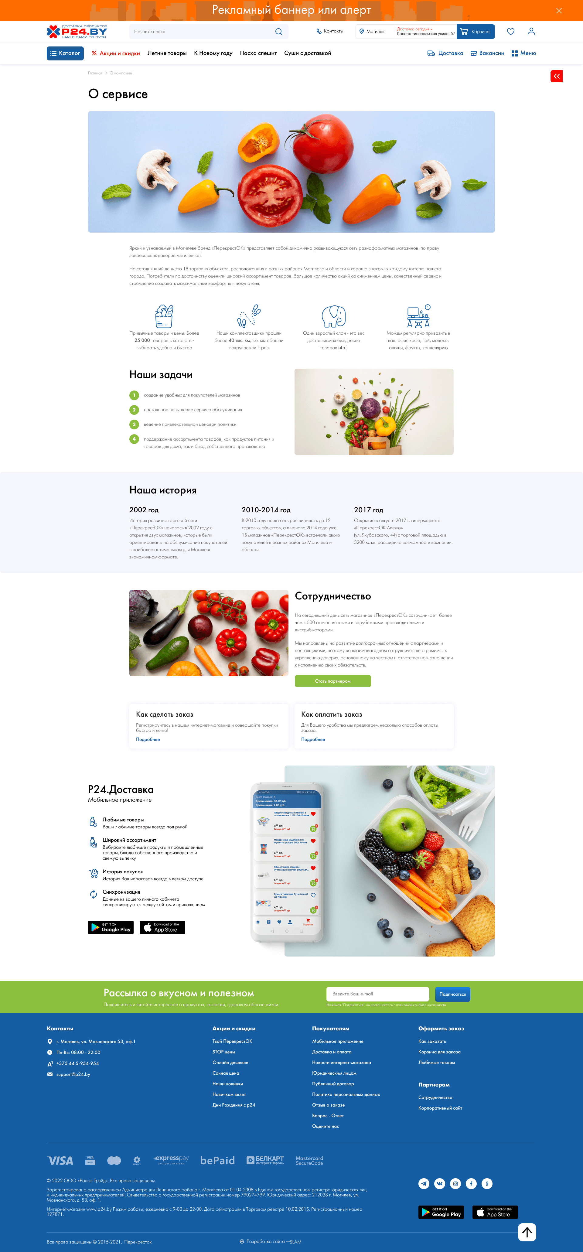 Разработать абсолютно новый интернет-магазин на CMS Битрикс. Использовать только стандартные подходы в разработке крупных интернет магазинов. При разработке проекта нужно опираться на лучшие проекты в сфере фудтеха СНГ.