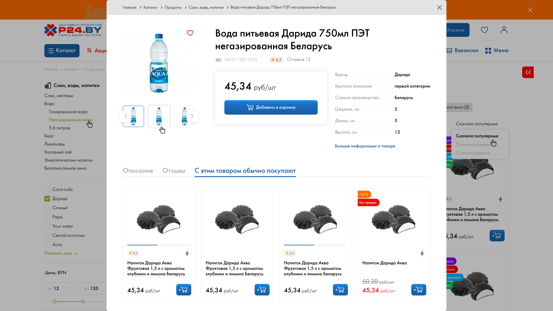 Карточка товара представлена в виде отдельной страницы и попап-окна, которое содержит весь функционал карточки.