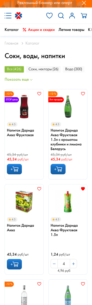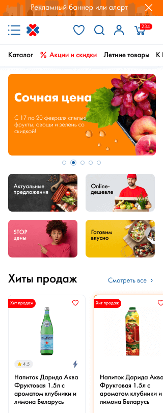 Теперь информация о каждой акции очевидна, понятна и доступна в любой момент времени. Карточка акции имеет свое описание, а также товары, привязанные к этой карточке, что позволяет ознакомиться с предложением и сразу же добавить данный товар в корзину.