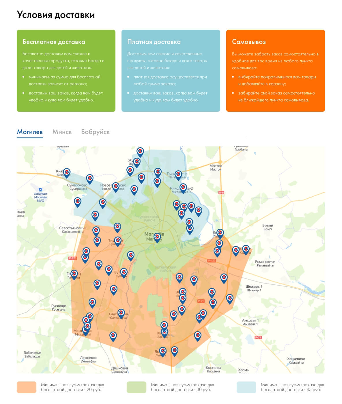 А еще мы сделали отдельный сервис «Зоны доставки»