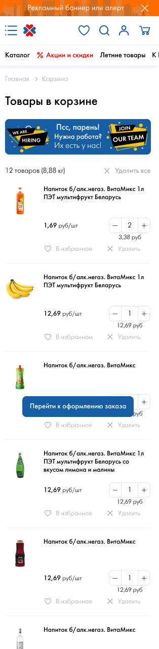 - интерактивный прогресс-бар с расчетом суммы до бесплатной доставки;