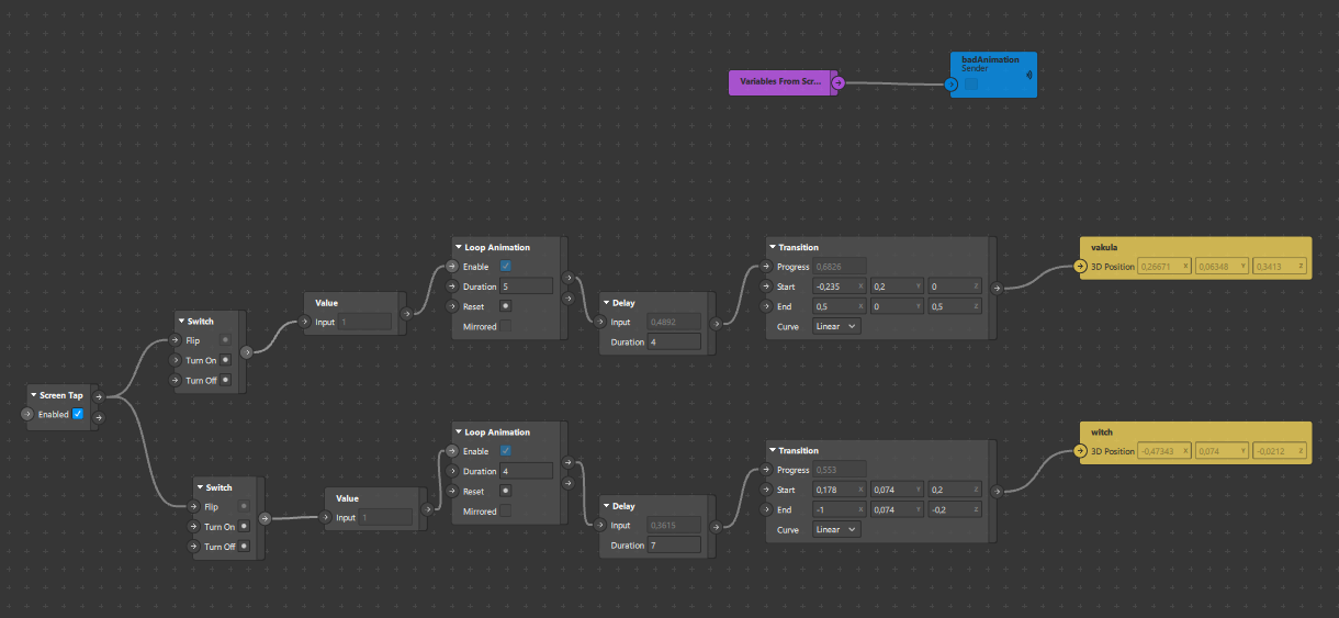Маски получились достаточно сложными в реализации, мы использовали достаточно много встроенных функций по работе с анимацией, таймингами, эффектами, счетчиками и т. д. Для реализации игровой механики часть маски мы написали на JavaScript.
