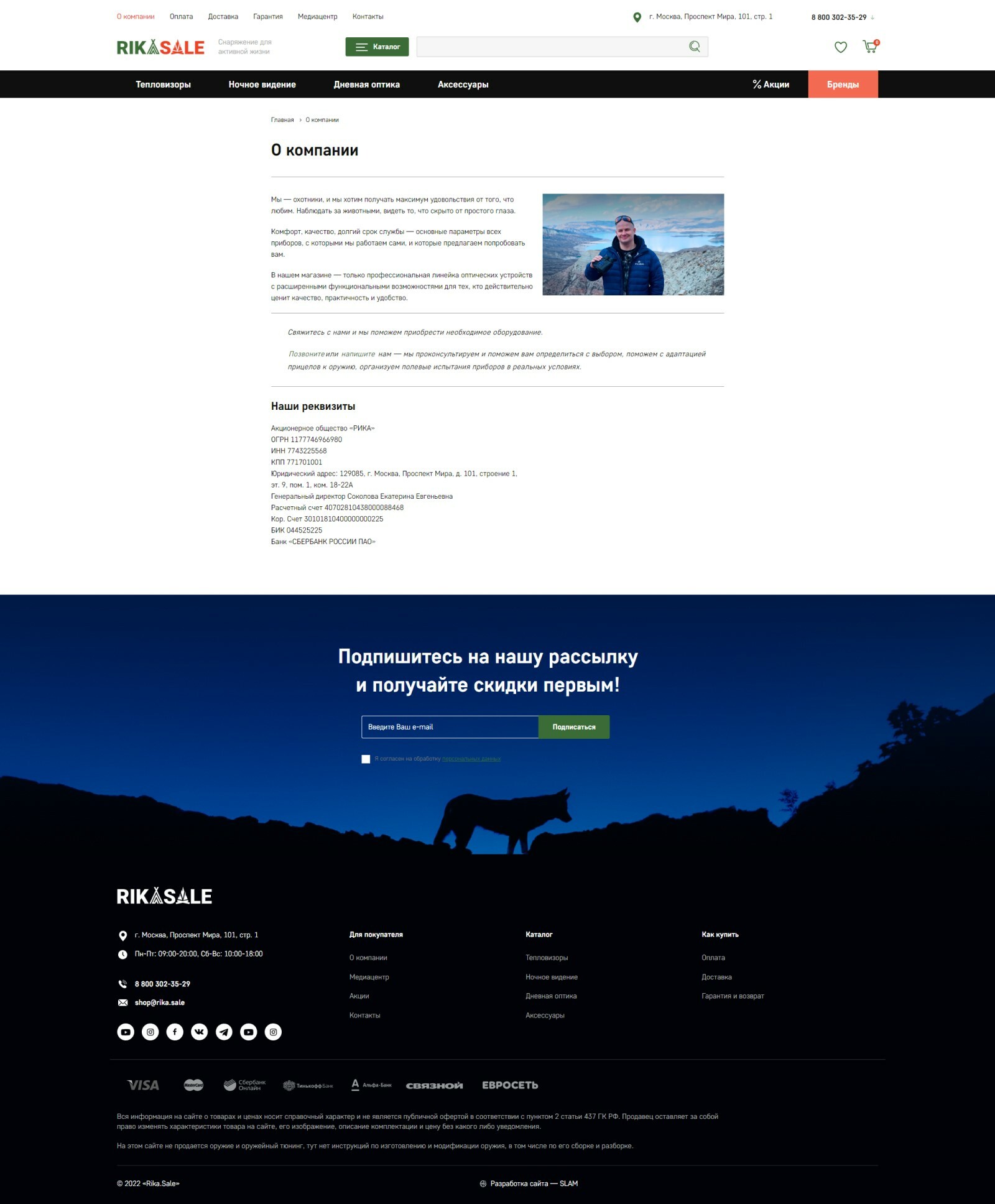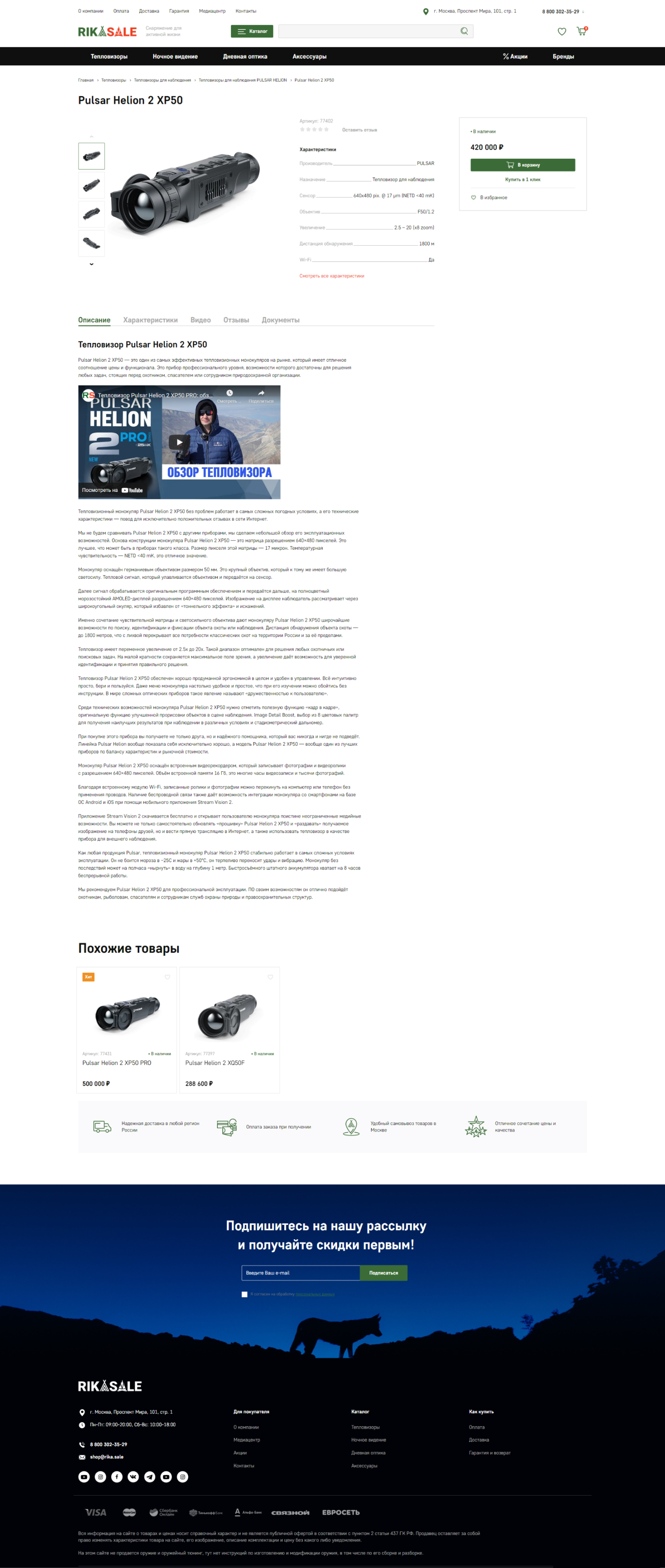 rikasale.ru — это уже 3 по счету магазин после Pulsar и Hikmicro, который мы сделали для компании «Рика».