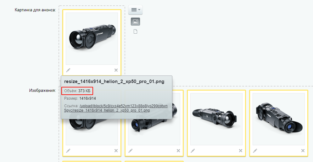Помимо стандартных Битрикс-инструментов мы используем собственный модуль сжатия изображений с конвертацией их в легкий webp-формат. Изображения товаров в хорошем качестве весят всего по 5−10 килобайт без потери качества.