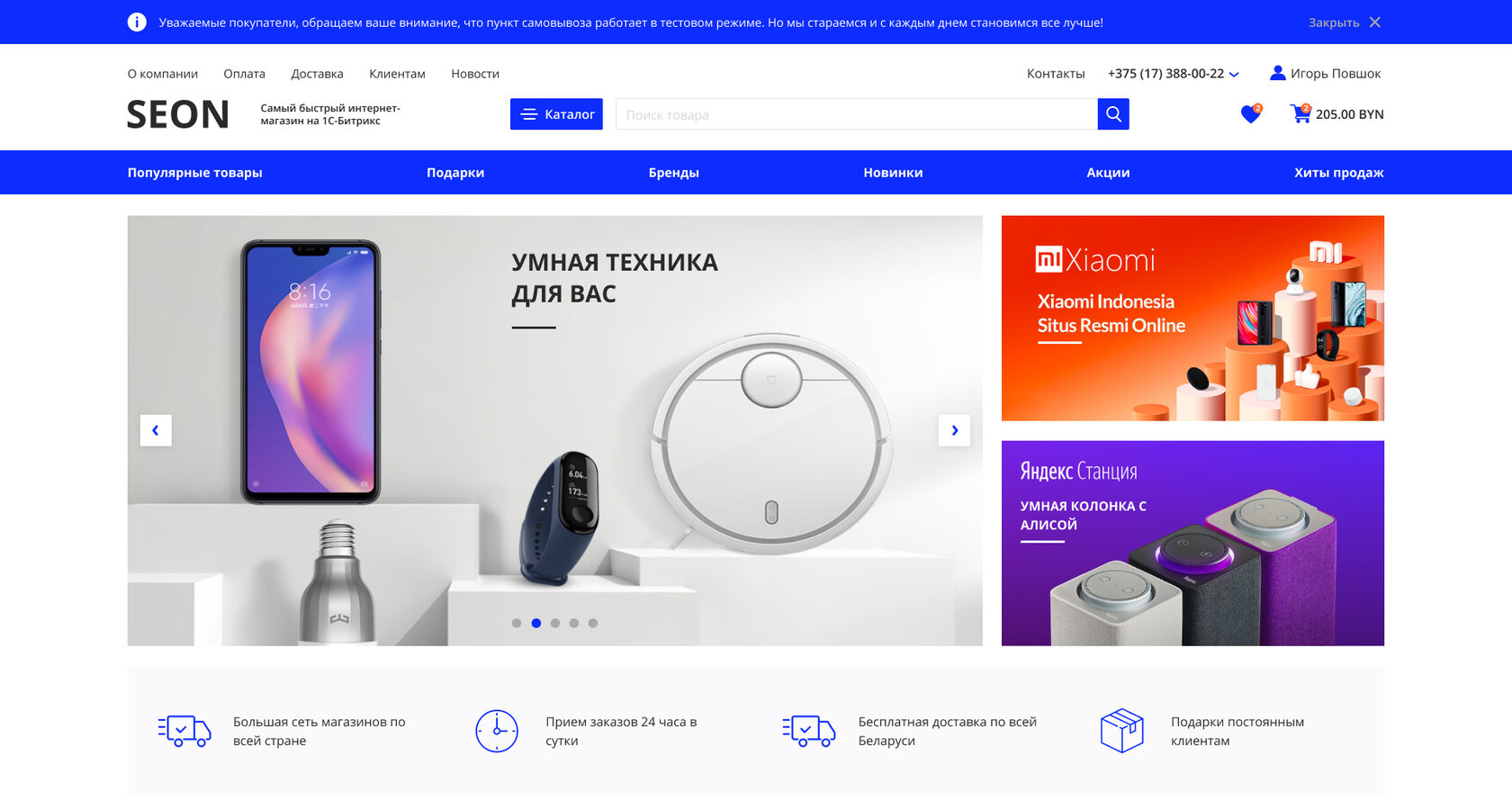 У нас с клиентом уже сложились хорошие доверительные отношения, поэтому мы предложили попробовать наше коробочное решение «SEON», которое появилось у нас за 5 лет постоянного развития собственных стандартов, сборщика и опыта разработки большого количества клиентских интернет-магазинов из совершенно разных сфер. Уже 3 года подряд мы являемся ведущей веб-студией разработки интернет-магазинов Беларуси и Рейтинге Байнета, и в Рейтинге Рунета.