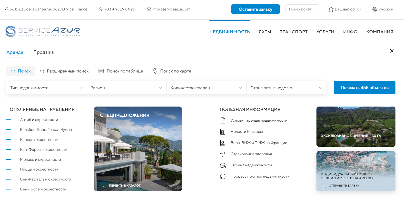 Группа компаний ServiceAzur ведет свою работу на Лазурном берегу Франции и работает с русскоговорящими клиентами.