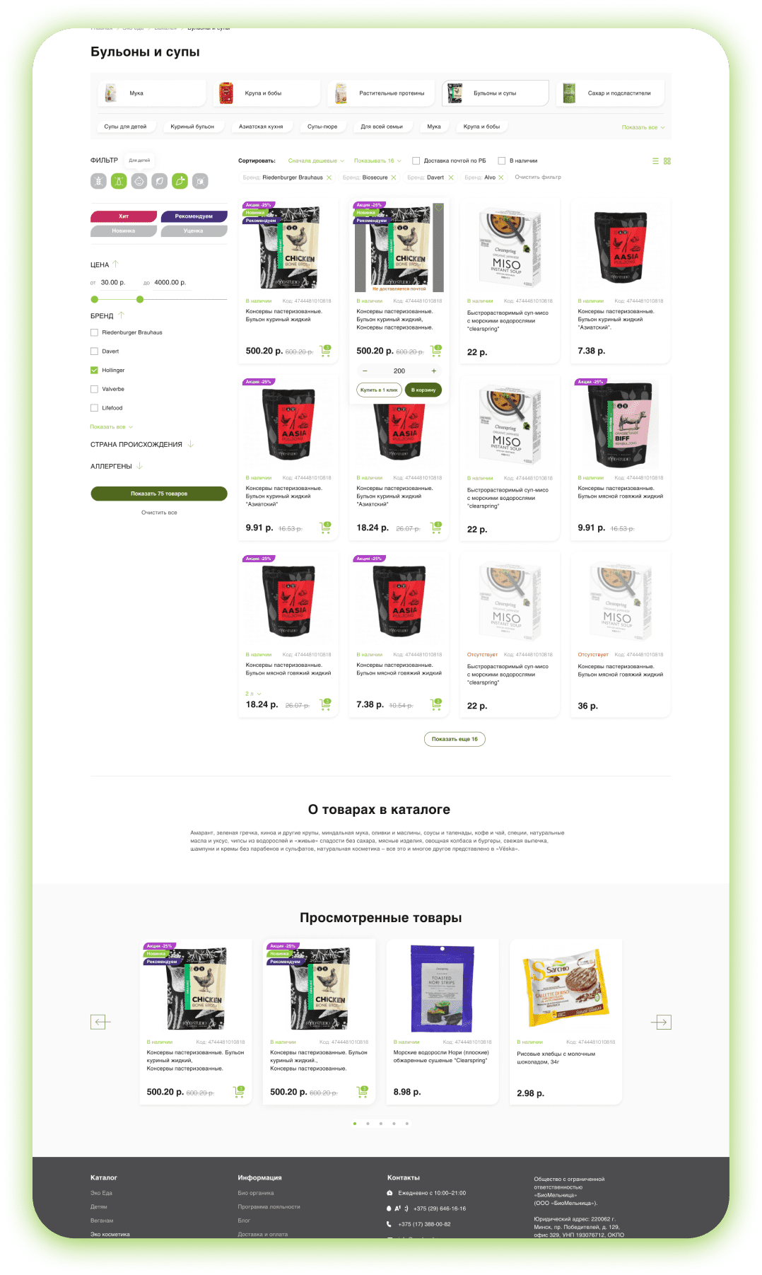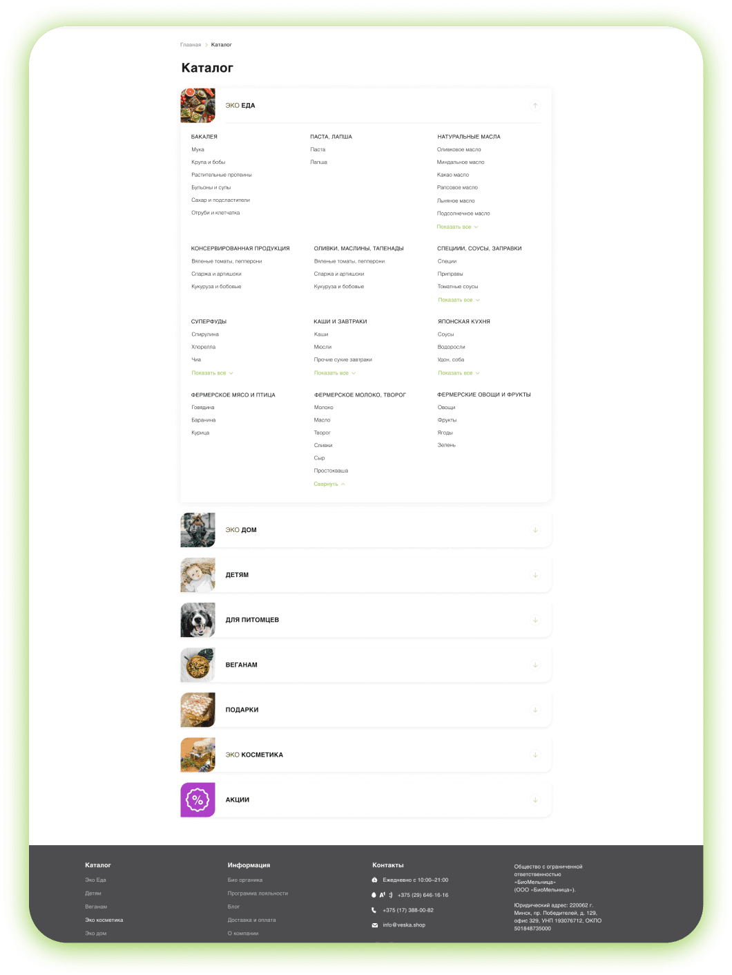 При проработке дизайна сайта нам хотелось подчеркнуть особенность, что сайт продает экологичные товары, фермерские продукты.