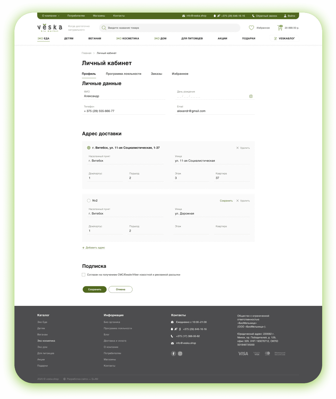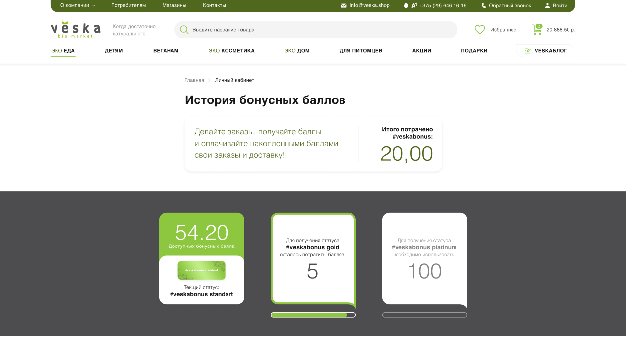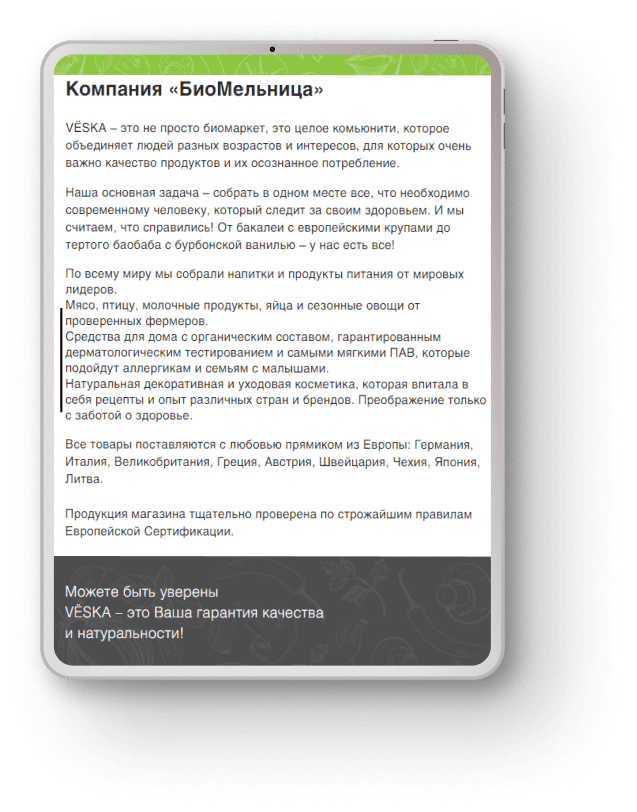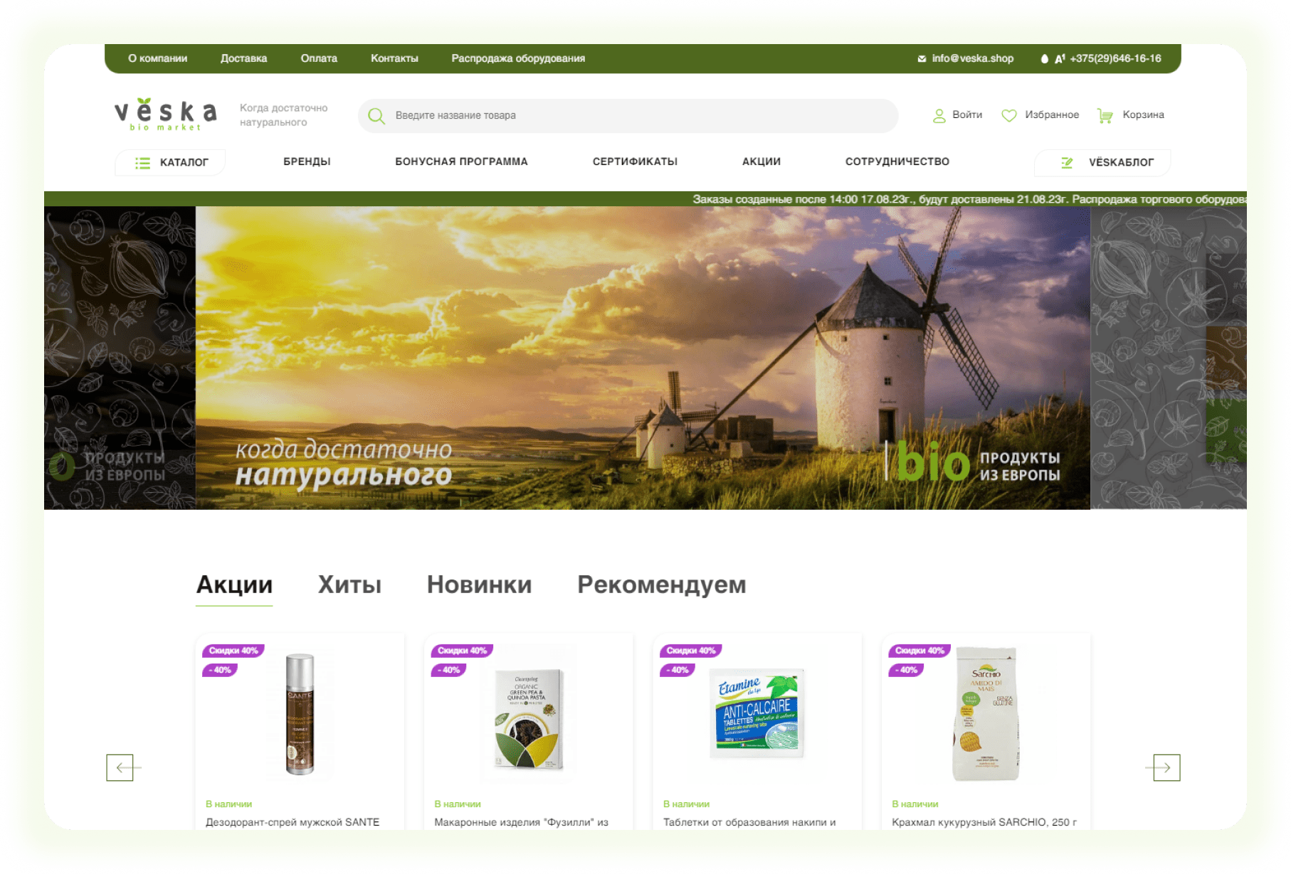 Торговая сеть биотоваров Vёska, имеющая три офлайн-магазина, приняла решение запустить интернет-магазин veska.shop