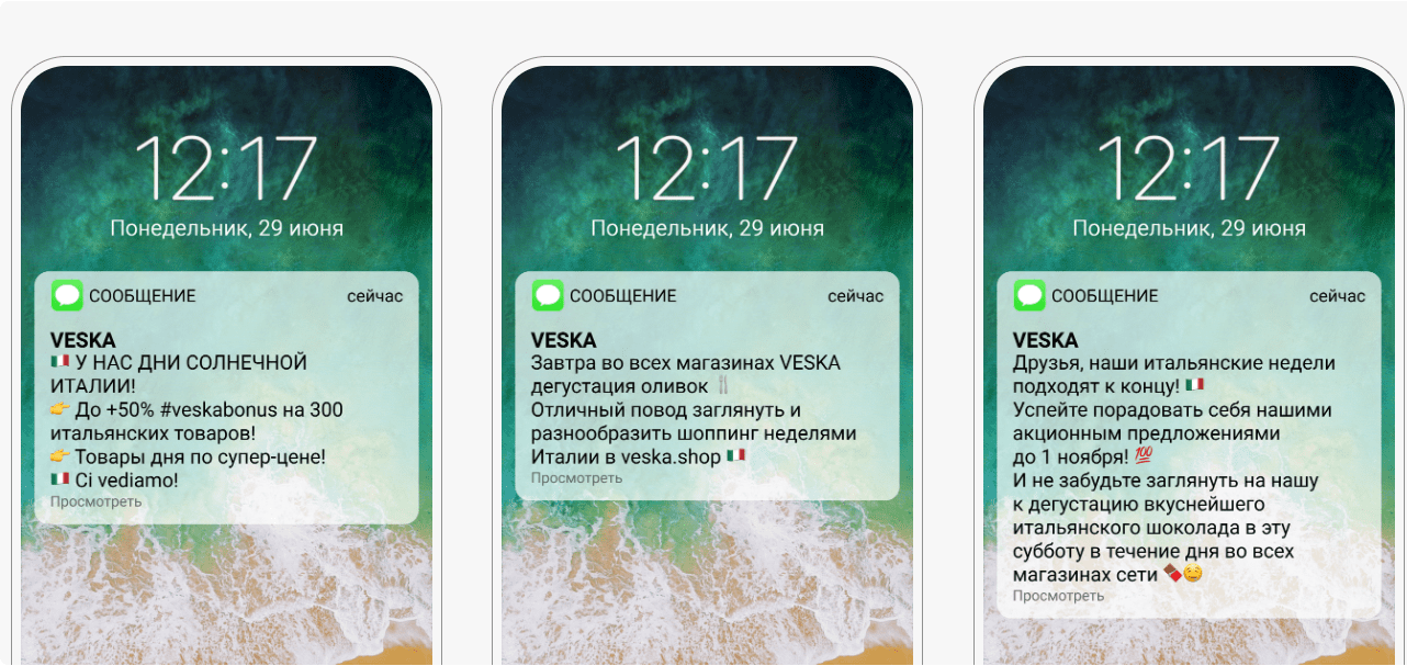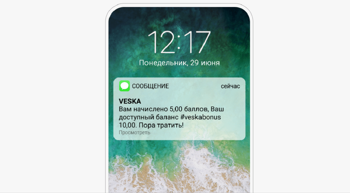 В программе лояльности три уровня: Standart, Gold и Platinum. Чем выше уровень, тем больше баллов начисляется за покупку: от 5 до 15%. Оплатить баллами можно до 70% стоимости товаров, доступными они становятся через 24 часа после покупки, а сгорают через полгода. О доступных баллах и переходе на новый уровень клиенты VЁSKA узнают с помощью SMS. По опыту коллег из Mindbox, это самый популярный канал в Беларуси.
