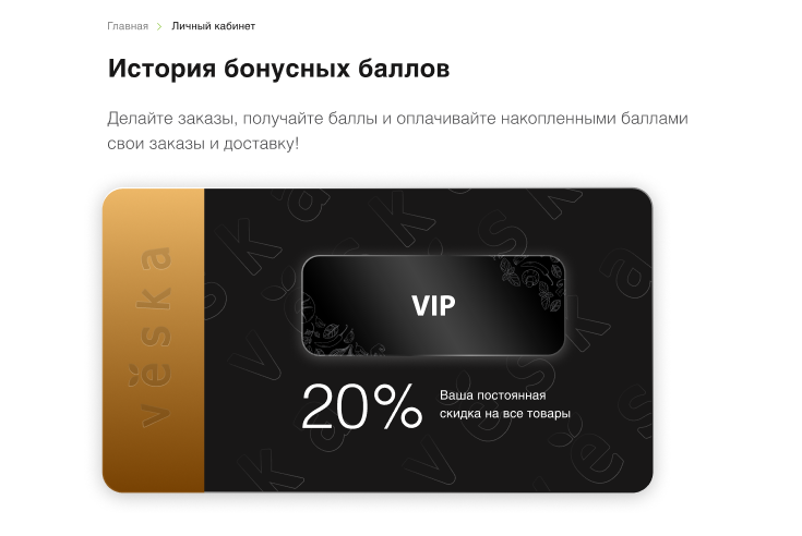 Но главной особенностью интернет-магазина Veska является ее программа лояльности, которая управляется сервисом «Mindbox».